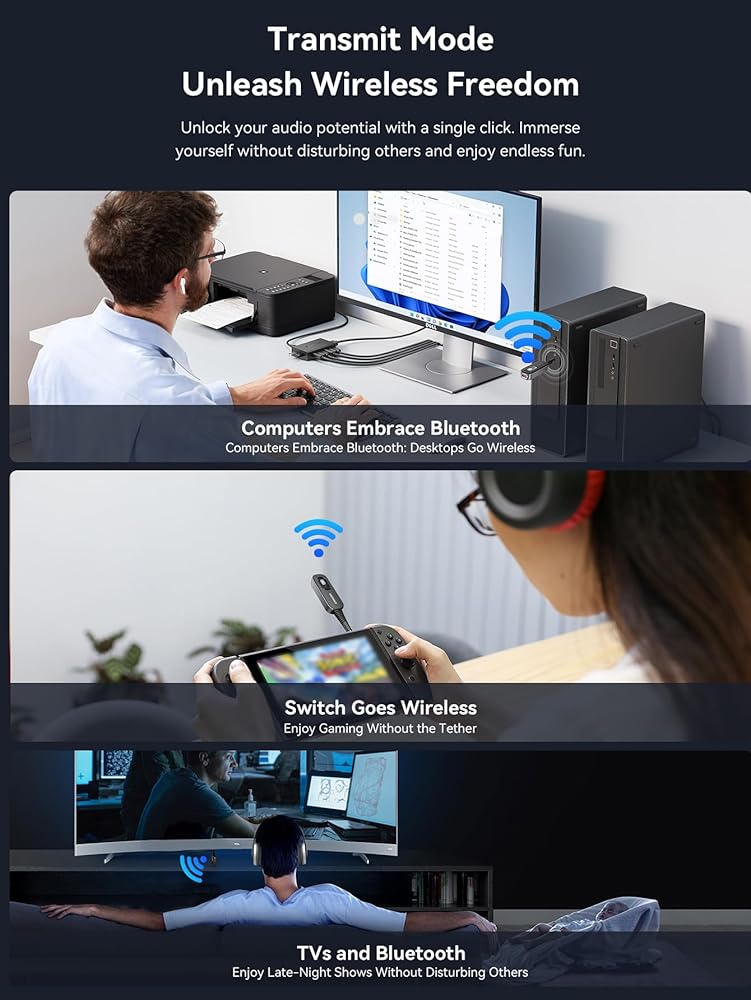 Enhanced Connectivity: Turn non-Bluetooth devices like older speakers or car stereos into wireless receivers (RX mode), or immerse yourself without disturbing others by transmitting (TX mode) to headphones or speakers.