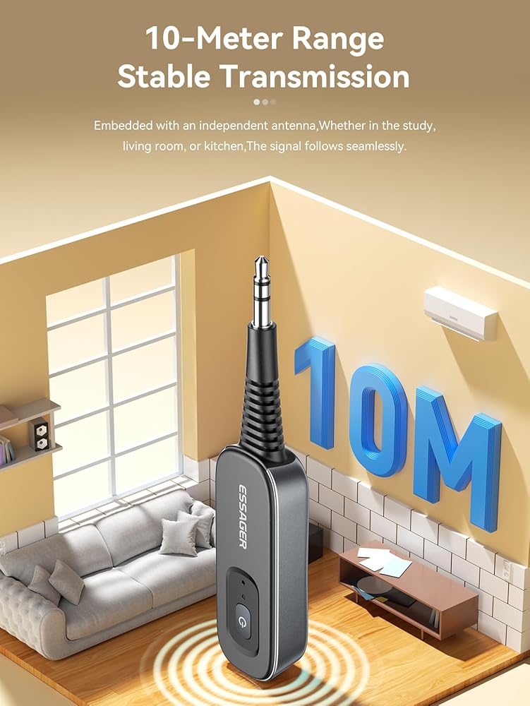 Extended Range: Enjoy reliable Bluetooth connectivity within a 10-meter transmission distance.