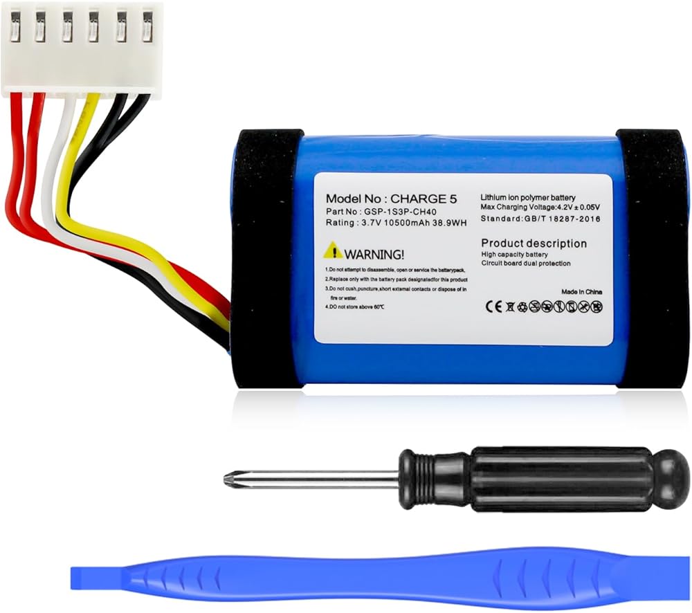 بطارية بديلة GSP-1S3P-CH40 بقدرة 10500 مللي أمبير في الساعة لمكبر صوت بلوتوث JBL Charge 5 المقاوم للماء، 2024 ترقية بطارية عالية السعة 3.7 فولت مع مجموعة أدوات إصلاح