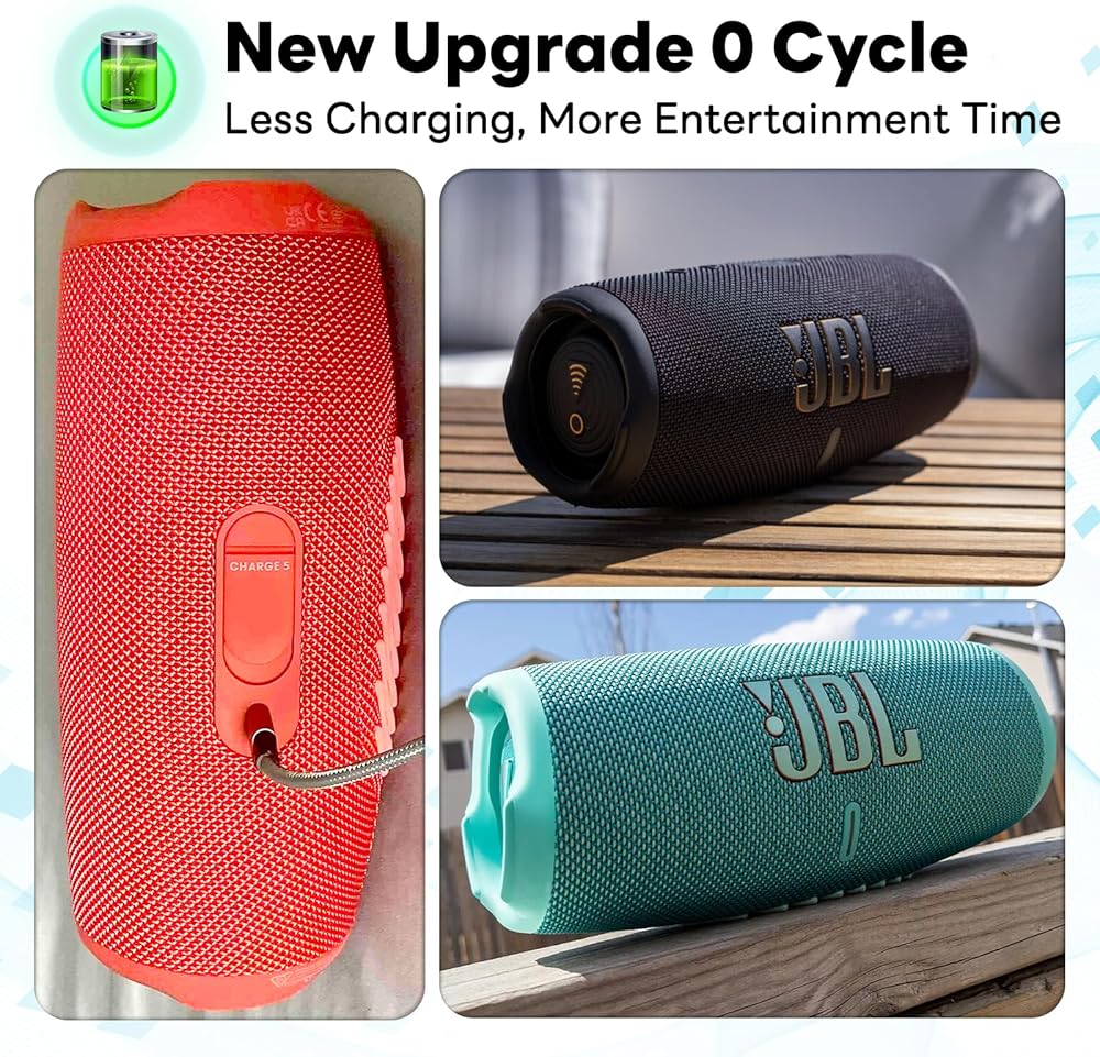 ✔️【رقاقة ترقية】ترقية جديدة لبطارية JBL Charge 5 مصنوعة من بطاريات عالية الجودة من الفئة A وحاصلة على شهادات CE وFCC وUL وPSE وROHS. رقاقة مدمجة لمنع الشحن الزائد والتفريغ الزائد والسخونة الزائدة