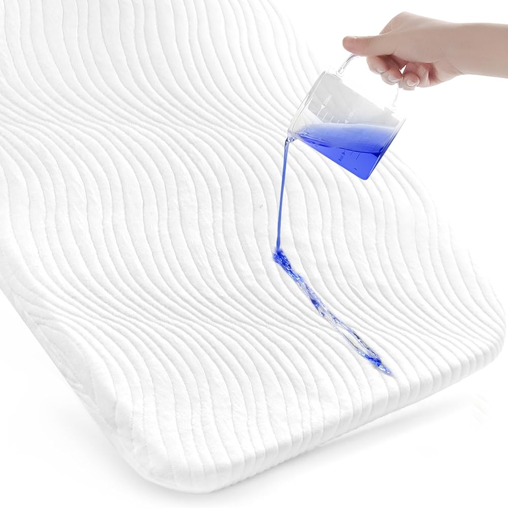 Premium Fabric: The easily removable outer cover of this bassinet mattress pad is made of ultra soft and the bottom of waterproof membrane TPU material which can keep any liquid from leaking into your mattress pad.