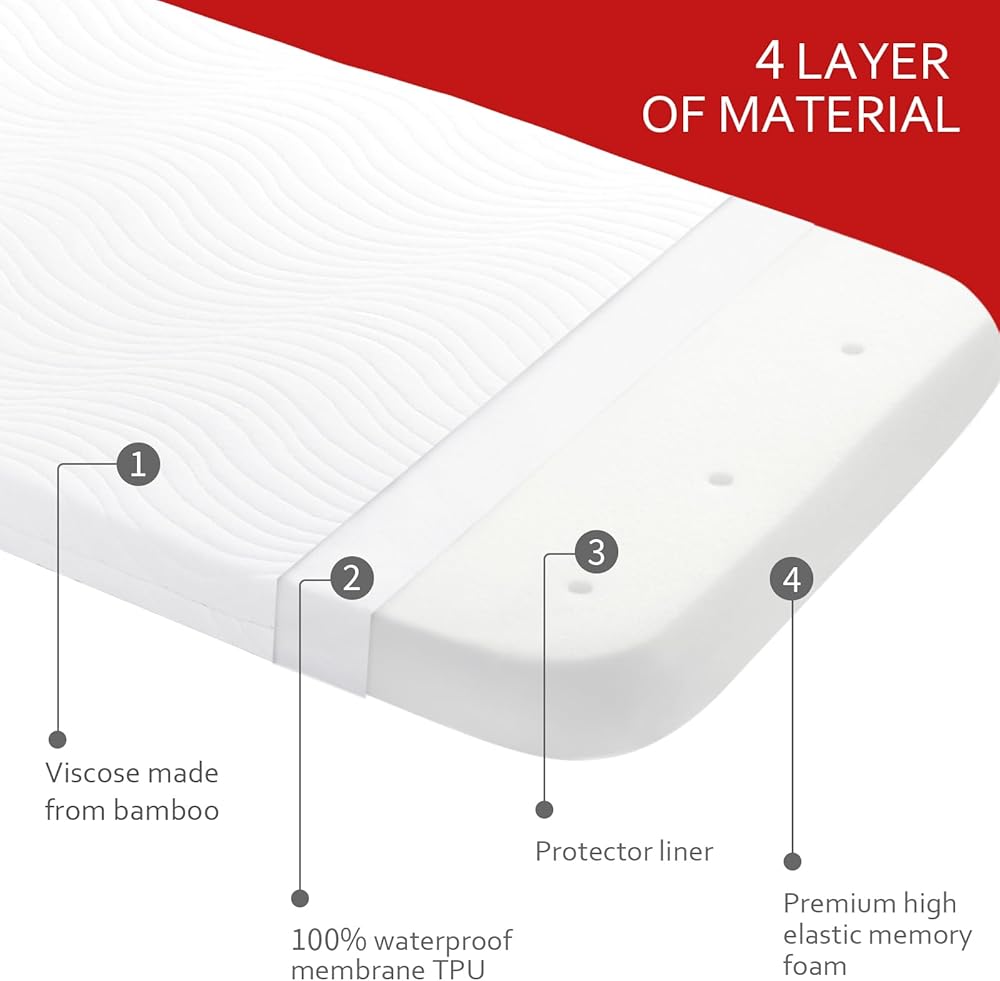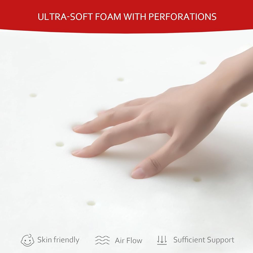 Breathable & Soft Foam: The ultra-soft foam with perforations will keep air flow and reduce the risk of suffocation. At the same time, there is a protector liner on the outside of our premium foam to prevent dust from entering the perforations which can give your baby a long-term comfortable experience.