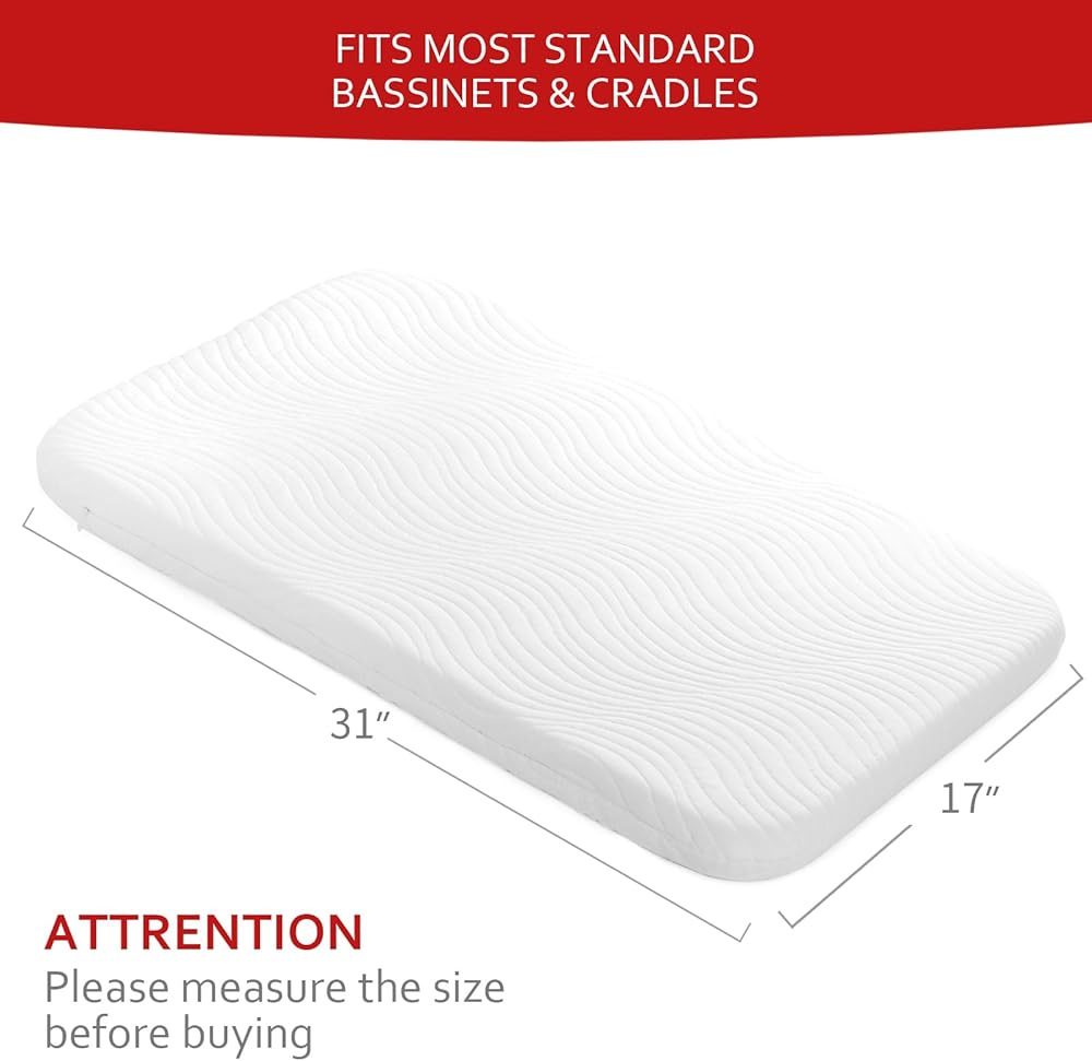 Perfect Fit: The mattress pad measures 17" x 31", specifically designed to fit rectangle shaped bassinet. Please measure the inside of your bassinet to ensure a perfect fit. These bassinet mattress pad are made in our manufactory which are certified OEKO-TEX Standard 100.