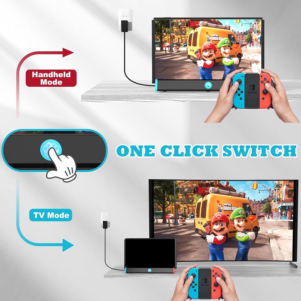 【نقرة واحدة لتبديل الوضع】: تم تصميم محطة إرساء التبديل مع وضع الراحة في الاعتبار، وتتميز بآلية تبديل بلمسة واحدة. تم تصميم محول التلفزيون Switch خصيصًا للتبديل بسلاسة بين وضع تلفزيون OLED ووضع قاعدة الشحن لضمان التشغيل الخالي من المتاعب.