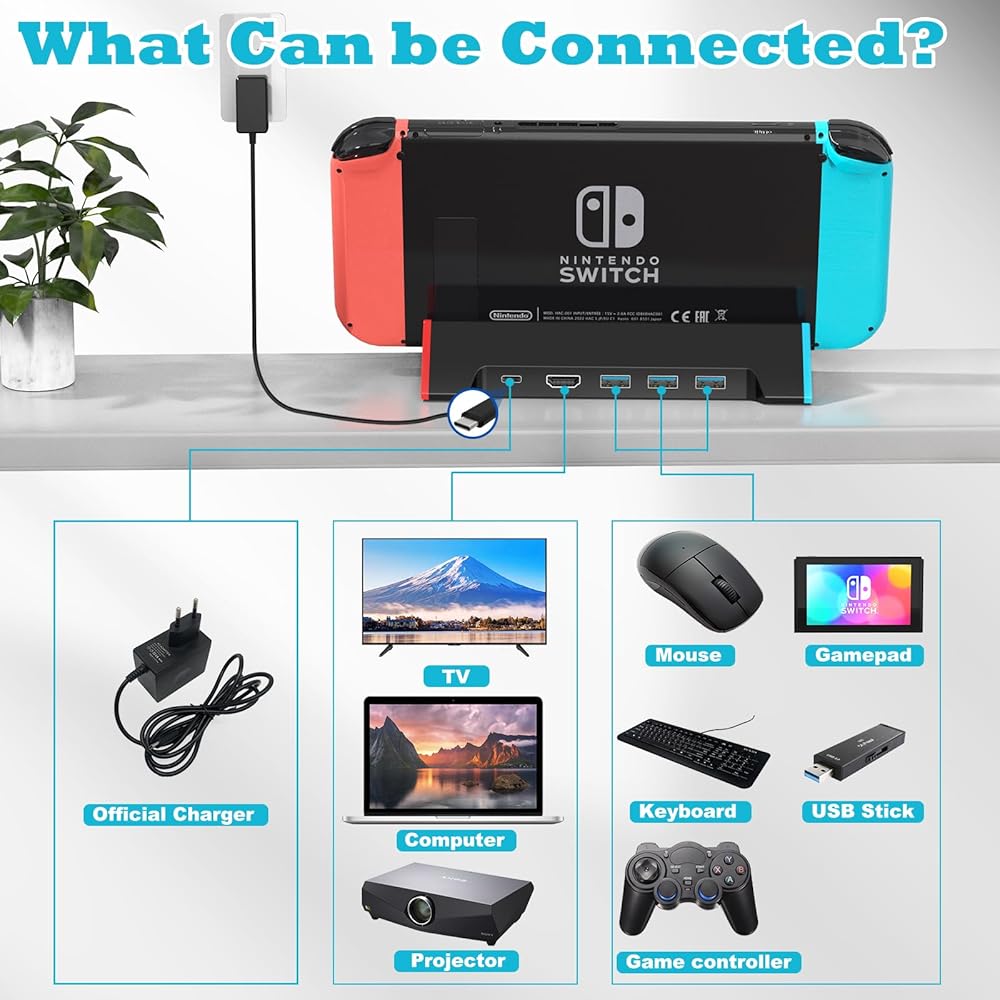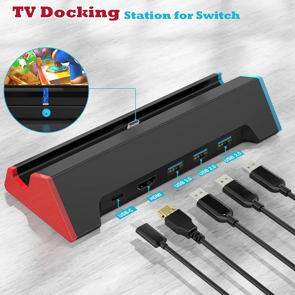 قاعدة توصيل تلفزيون لنينتندو سويتش، قاعدة باتوني سويتش مع مخرج HDMI 4K@60 هرتز/منفذ من النوع C/USB 3.0، مدمجة وخفيفة الوزن ومحمولة، محطة إرساء تلفزيون، بديلة لمنصة التبديل الرسمية
