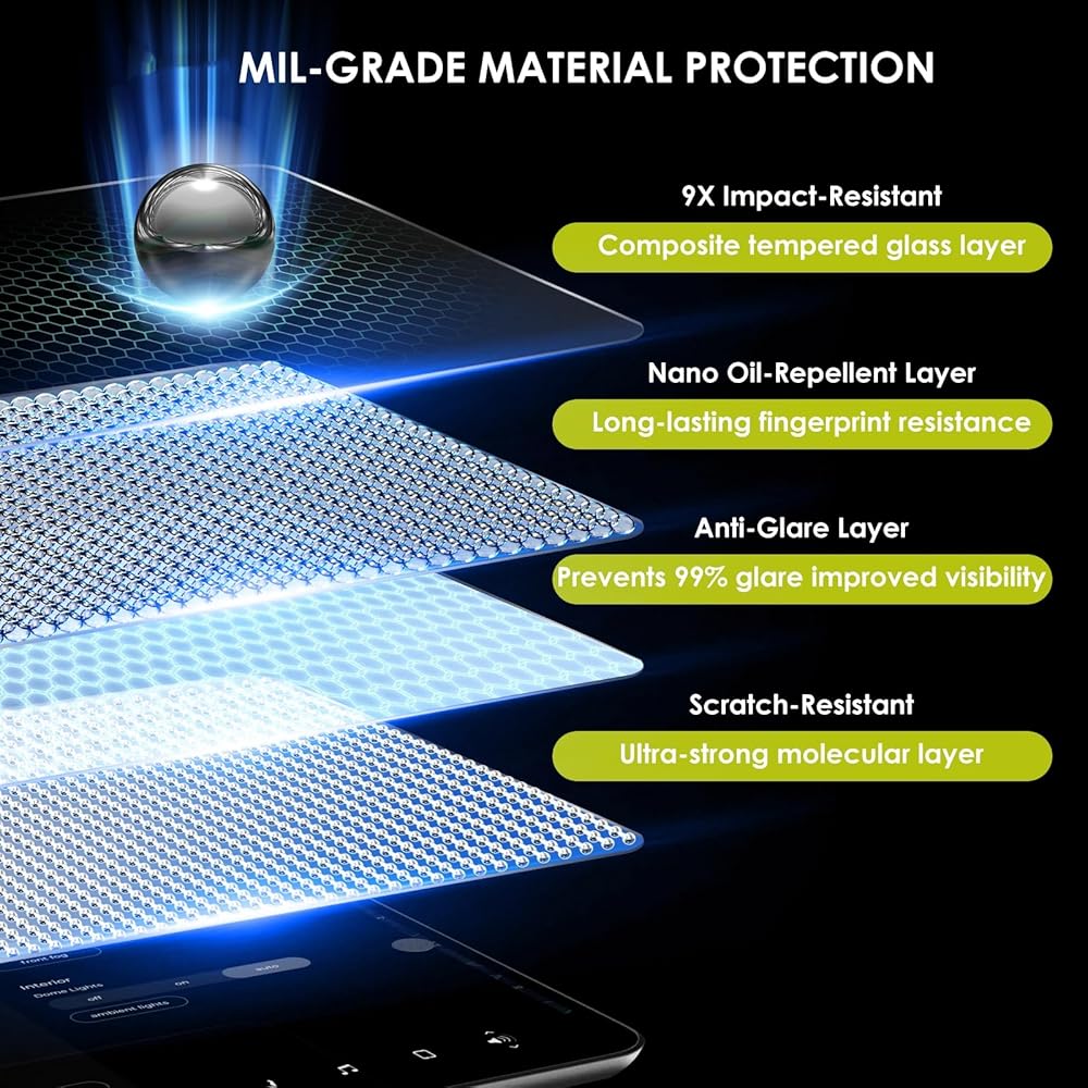 ✅【تقنية مضادة للوهج تحافظ على الرؤية الواضحة للغاية طوال اليوم】هل سئمت من انعكاس ضوء الشمس القاسي على شاشة التحكم المركزية أثناء القيادة؟ فقط قل وداعًا الآن! يستخدم واقي الشاشة غير اللامع الأحدث من Tussgey تقنية بصرية انعكاسية منتشرة ويتميز بلمسة نهائية غير لامعة، مما يقلل من الوهج بنسبة 90% دون المساس بالوضوح! خاصة خلال ظروف ضوء النهار الساطع، فإنه يحسن الرؤية بشكل كبير ويقلل من التشتيت أثناء القيادة. سواء كنت تتنقل أو تضبط الإعدادات، ستظل شاشة Tesla الخاصة بك واضحة وقابلة للقراءة، مما سيعزز تجربة القيادة الشاملة الخاصة بك. تعمل Tussgey على حل هذه المشكلة لك مرة واحدة و للجميع