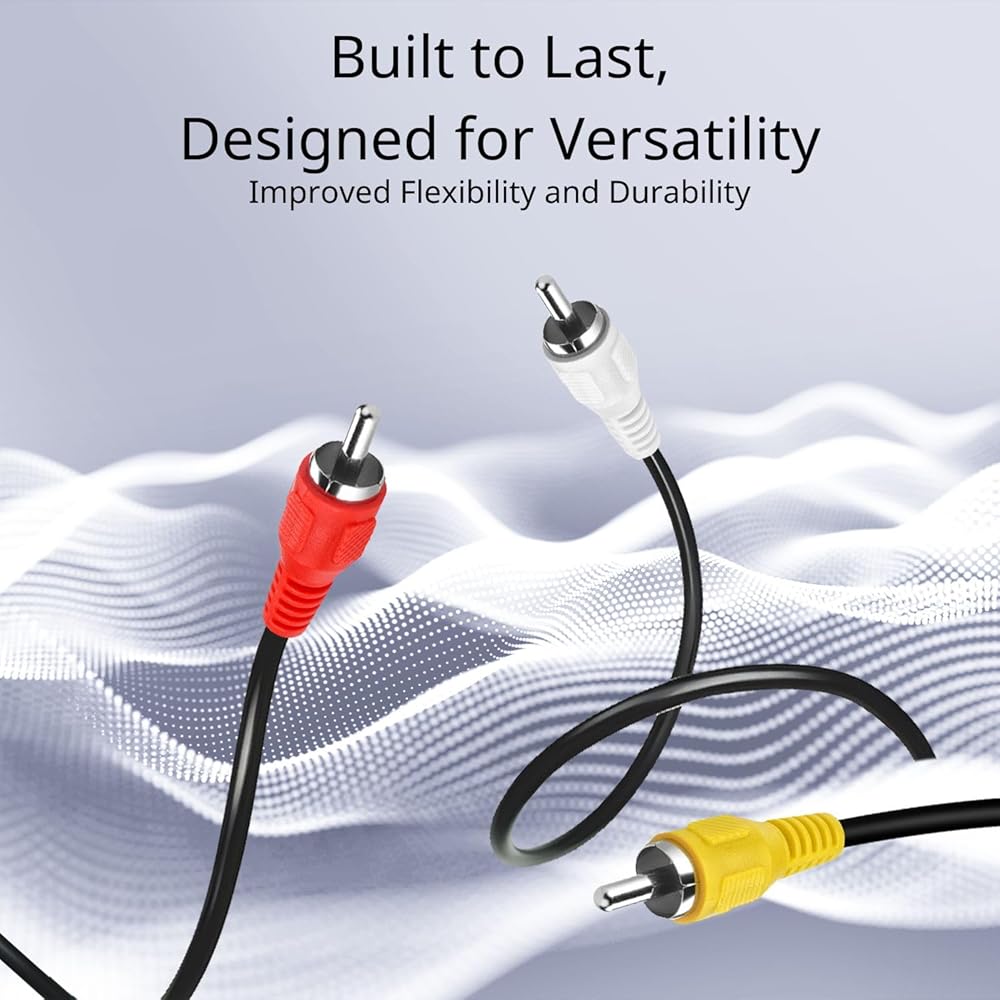 Experience superior audio and video quality with TNP 3 RCA audio video cable, meticulously designed for a high-quality analog connection between your devices. Immerse yourself in pure, distortion-free audio and visual signals thanks to the video RCA cable's oxygen-free copper lines and double shielding, effectively combating RFI and EMI interferences. Our AV cords universal compatibility allows seamless connection to various devices, including TVs, AV, home theater receivers, DVD players, amplifiers, projectors, radios, and car audio systems. This ensures a versatile AV setup for your home or office. The plug-and-play design of these 3 RCA male-to-male a/v cables simplifies your experience. Just connect your devices and enjoy immediate audio-visual playback without extra configuration. The optimal AV cable long length offers ample reach, providing the flexibility to arrange your DVD AV cord for audio and video setup to your preference, making it an essential component for any standard AV system.