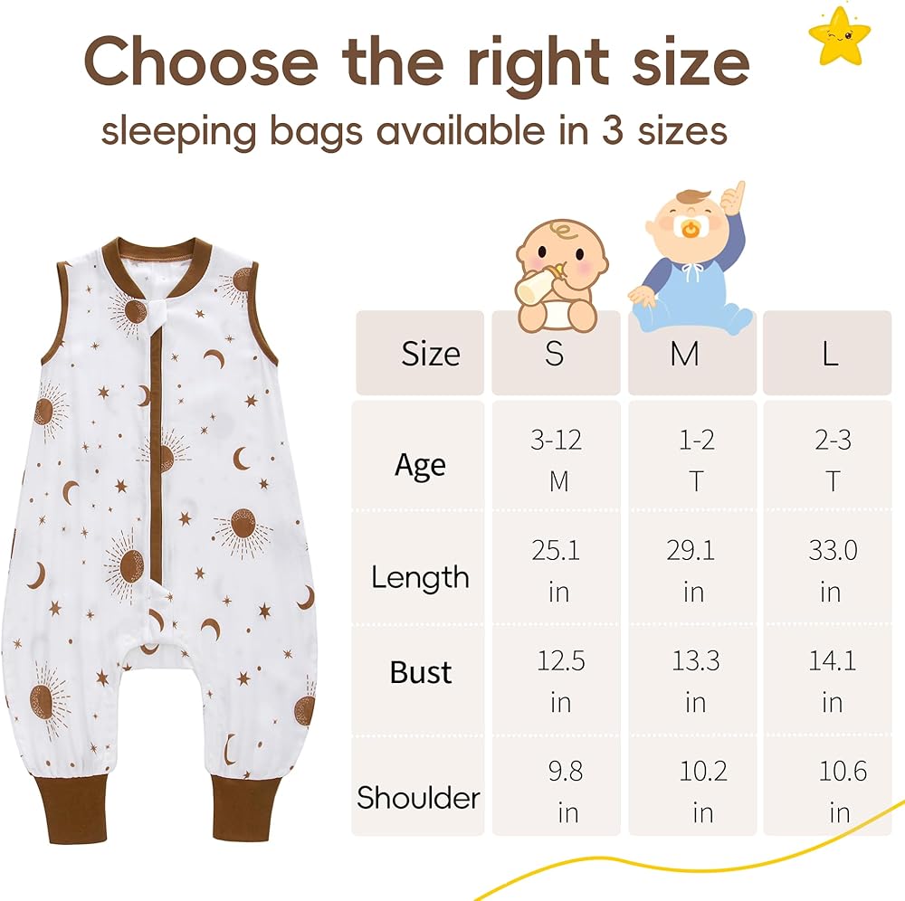• ثلاثة مقاسات للاختيار من بينها: تأتي حقيبة نوم الأطفال الصغار بثلاثة أحجام لتناسب الأطفال من عمر 3 أشهر إلى 3 سنوات. المقاس S مثالي للأطفال من سن 3 إلى 12 شهرًا، والمقاس M مثالي للأطفال من عمر 1 إلى 2 سنة، بينما المقاس L رائع للأطفال من عمر 2 إلى 2 سنة. -3T