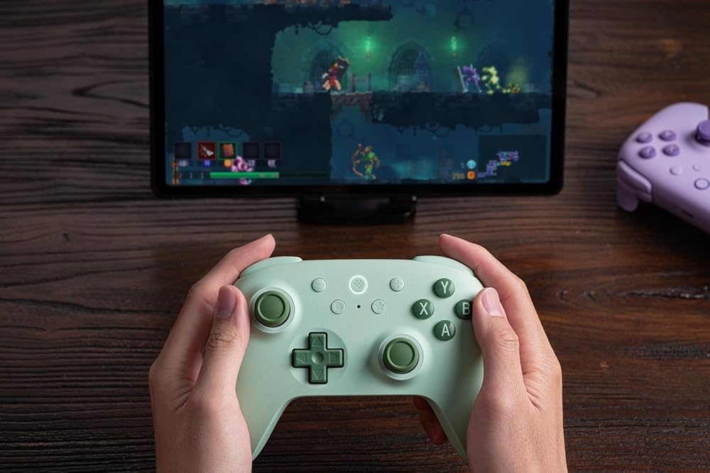 وحدة تحكم لاسلكية 8Bitdo Ultimate 2C لأجهزة الكمبيوتر التي تعمل بنظام Windows وAndroid، مع معدل اقتراع 1000 هرتز، وعصا التحكم ذات تأثير Hall ومشغلات Hall، ومصدات L4/R4 قابلة لإعادة التعيين (أخضر)