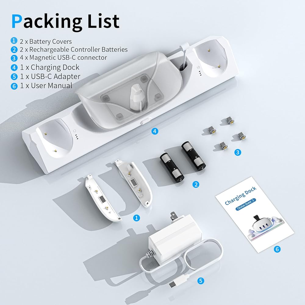 【السعي لتحقيق الرضا بنسبة 100% 】تتضمن العبوة: 1 × قاعدة شحن، 1 × محول USB-C، 1 × دليل المستخدم، 2 × أغطية بطارية، 2 × بطاريات وحدة تحكم قابلة لإعادة الشحن، 4 × موصل USB-C مغناطيسي، ضمان لمدة 12 شهرًا. رضا العملاء هو أولويتنا القصوى، وسيتم ضمان استرداد كامل المبلغ إذا كانت هناك مشكلة في جودة المنتج.