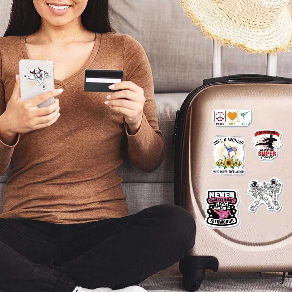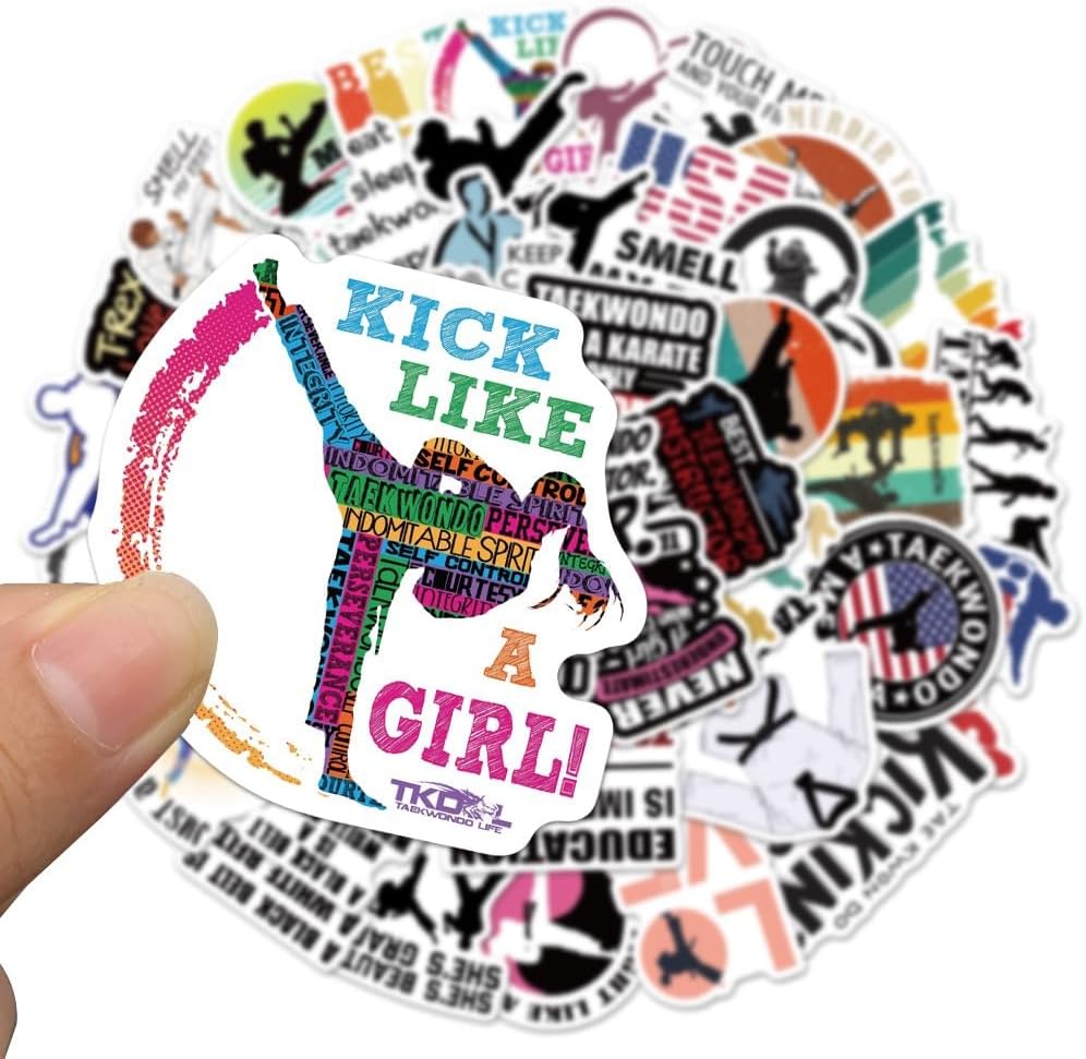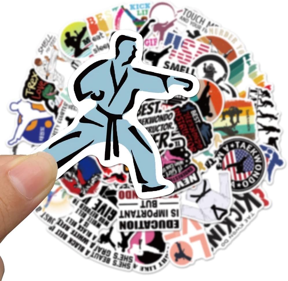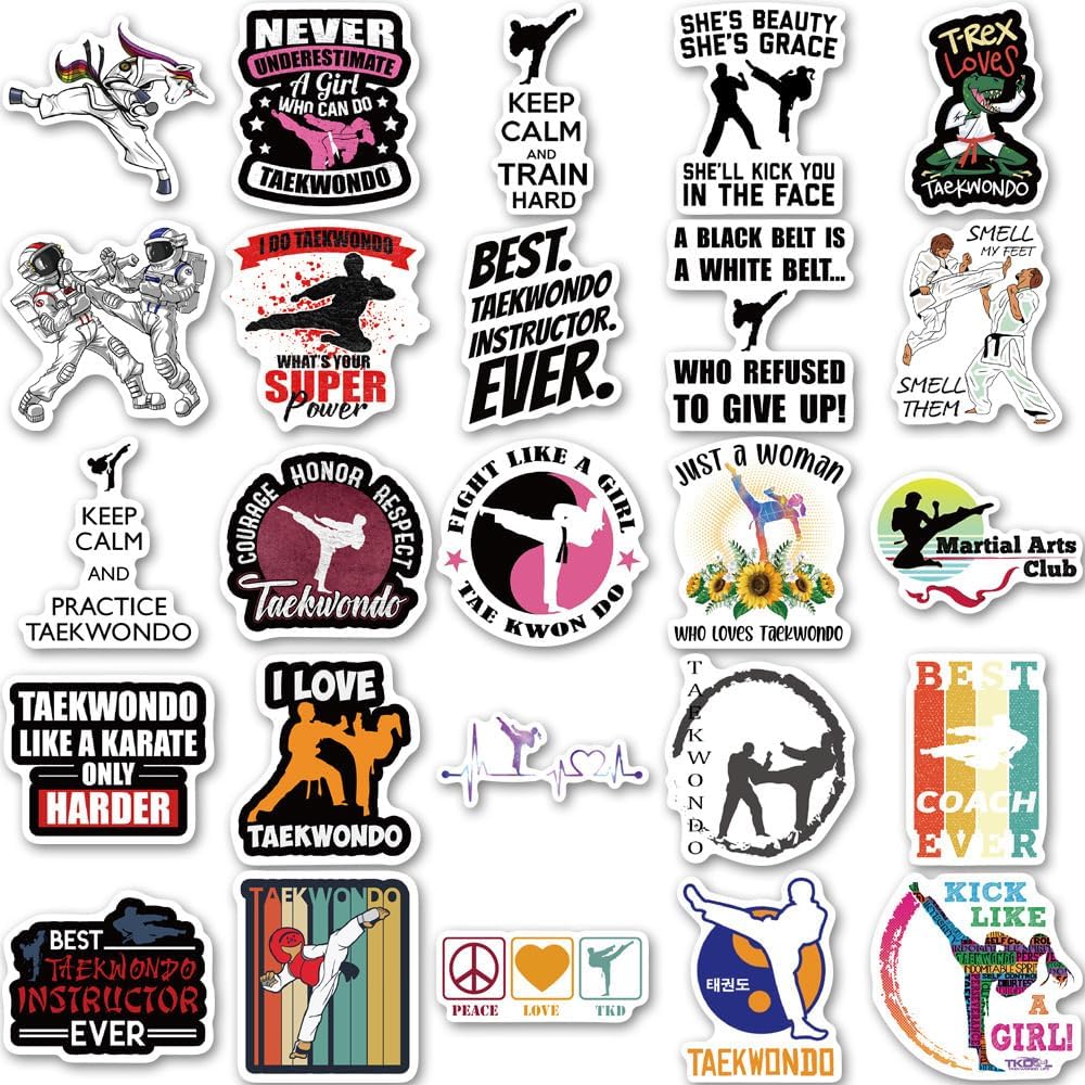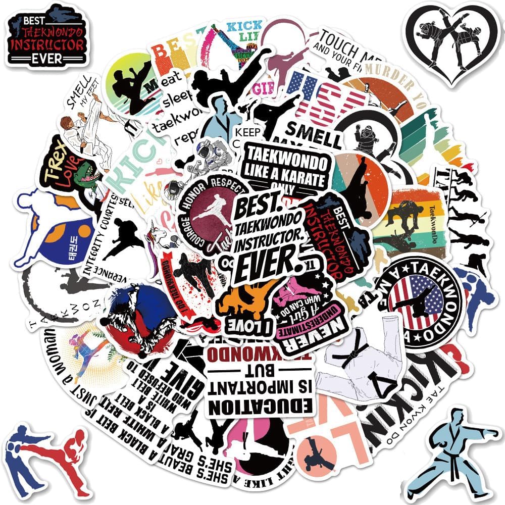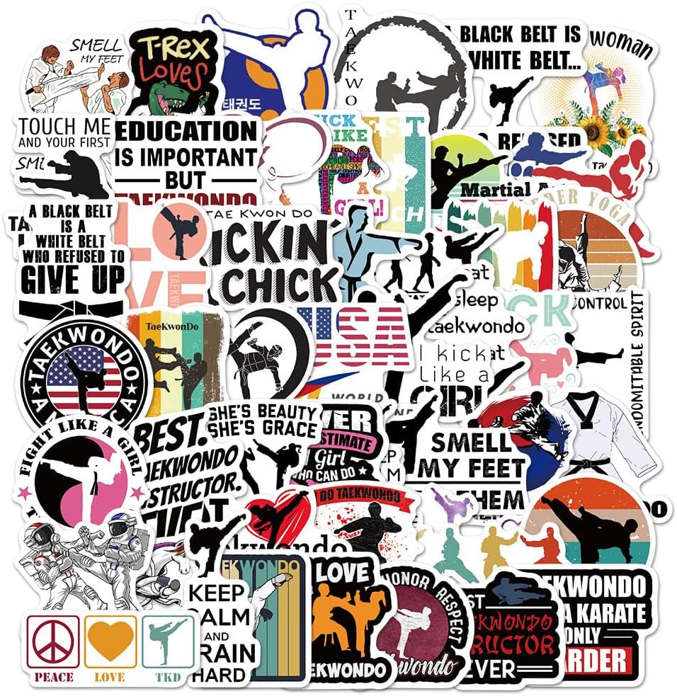 Taekwondo Stickers, 50Pcs Martial Arts Taekwondo Black Belt Self-Protection Stickers Decals for Laptop Water Bottle Cup Luggage Guitar Skateboard Helmet, Party Supplies Decor