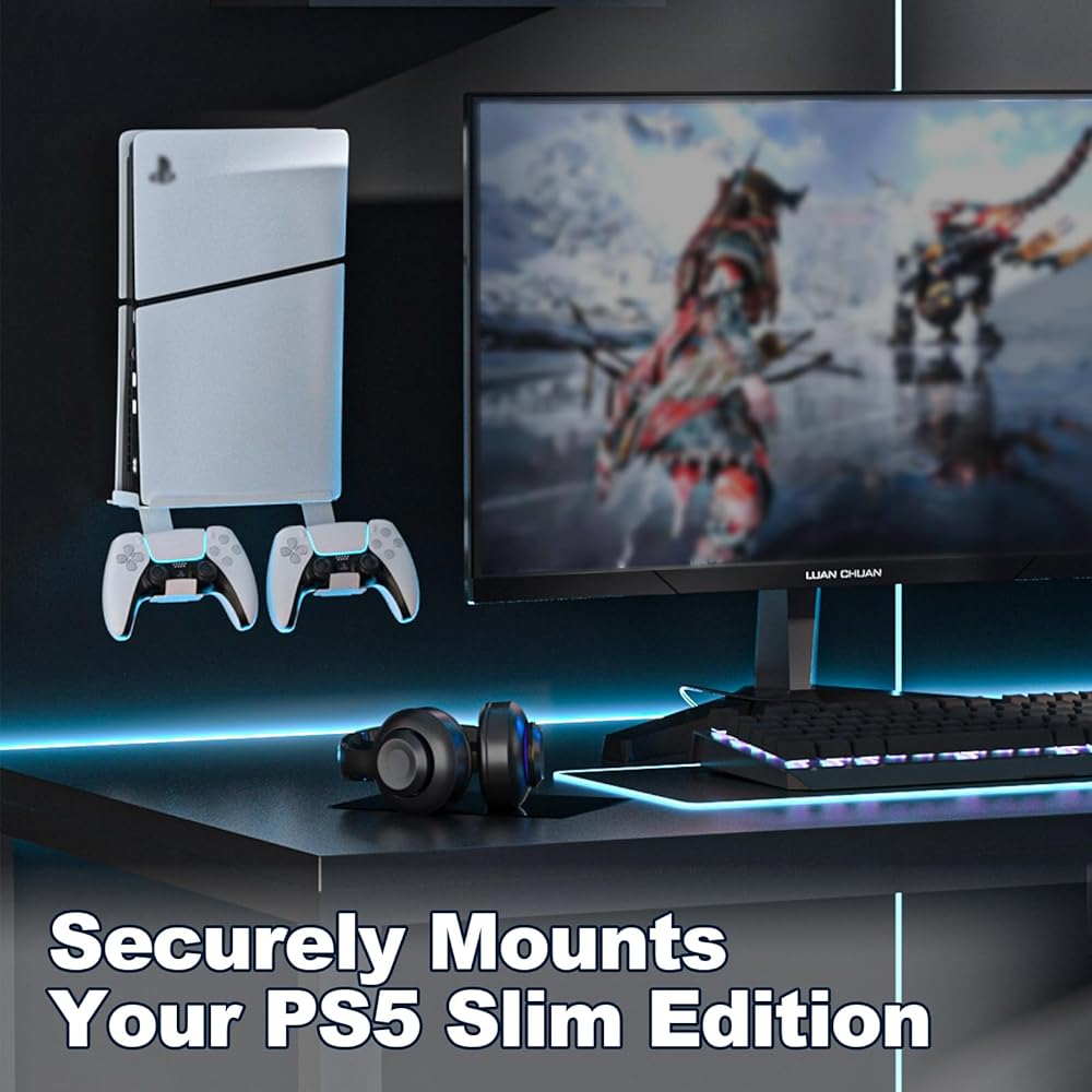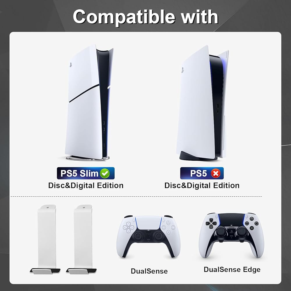 مجموعة أدوات التثبيت على الحائط PS5 لإصدار PS5 Slim & Disc، تركيب مجموعة PS5 الخاصة بك على الحائط، معدن سميك مع طلاء مسحوق، تتضمن دعامتين لوحدة التحكم قابلة للفصل لوحدات تحكم PS5، وحامل سماعة الرأس
