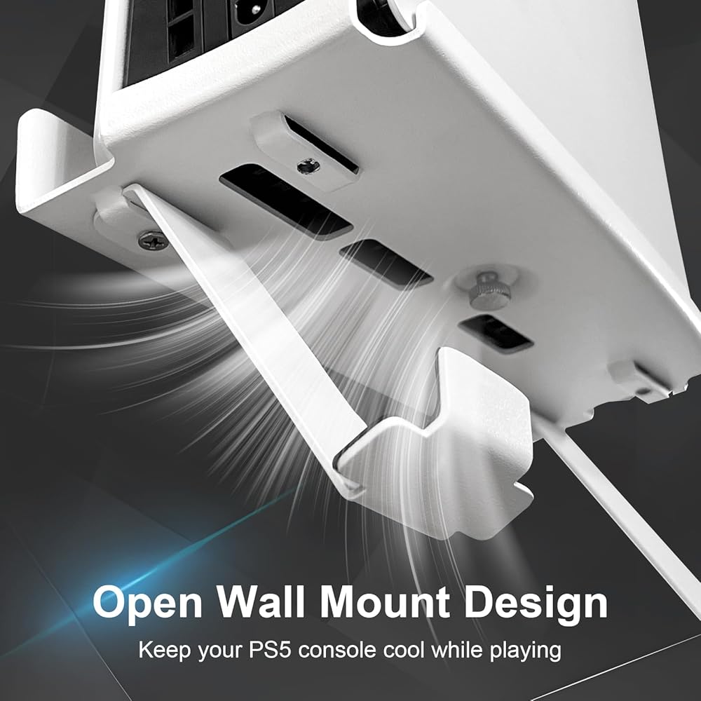 تهوية محسنة: يضمن تصميم التثبيت على الحائط المفتوح تدفق الهواء الأمثل لمنع ارتفاع درجة حرارة جهاز PS5 الخاص بك. يساعد تدفق الهواء السلس في تدفق الرياح وإشارات الشبكة اللاسلكية، مما يحافظ على البخار السريع والتركيز بشكل أكبر على لعبتك.