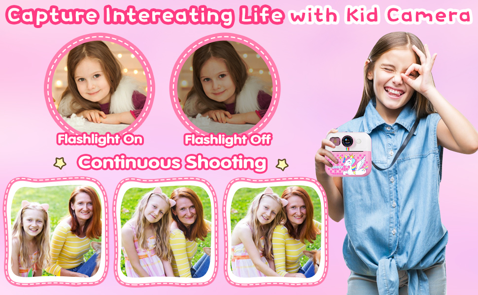 • 【كاميرا متعددة الوظائف للأطفال】تتميز كاميرا الطباعة الفورية للأطفال هذه بشاشة كبيرة مقاس 2.4 بوصة وتسجيل فيديو بدقة 1080 بكسل مع تكبير رقمي 16x، مما يوفر رؤية أكبر وأكثر وضوحًا للأطفال لالتقاط لحظات طفولتهم الجميلة. تشتمل الكاميرا الفورية للأطفال أيضًا على خاصية التصوير المتقطع والتصوير المستمر والمرشحات والألعاب ووظائف mp3 لتلبية احتياجات الطفل المختلفة.