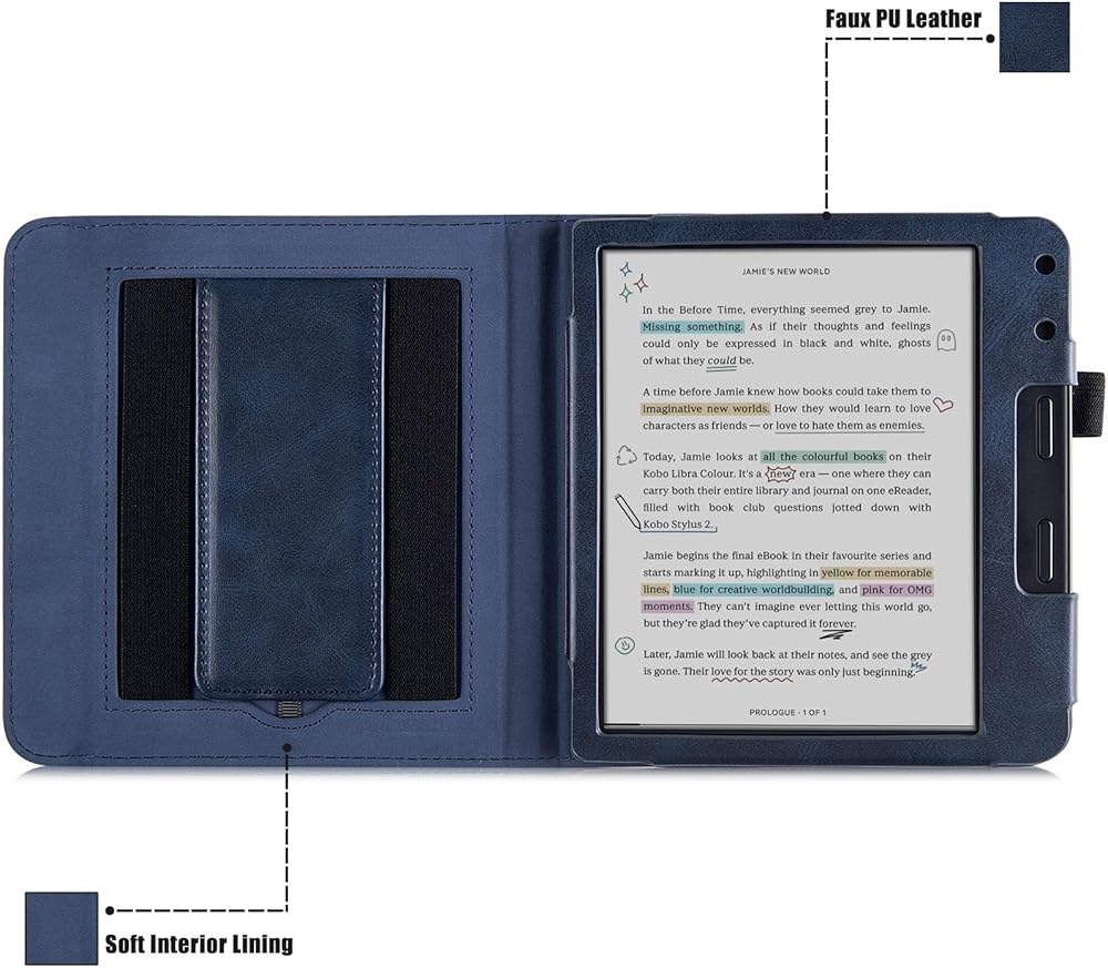2: Our Kobo Libra Colour case adds a full layer of protection to your kobo ereader and keeps its look exquisite. Whether you're using your Kobo Libra Colour at home, at the office or on the go, this kobo case provides reliable protection for your device.