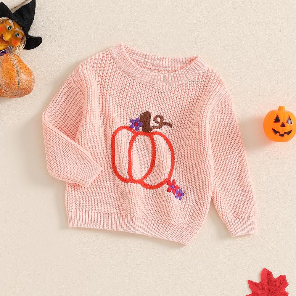 Baby Boy Girls Halloween Sweaters Infant Toddler Long Sleeve Pumpkin Letter Embroidery Knit Sweater Fall winter clothes