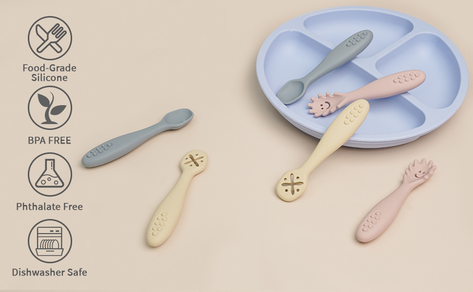 • يمكن تنظيف مجموعة الشوكة والملعقة للأطفال بسهولة في غسالة الأطباق من أجل غسل شامل ومريح، مما يجعل التنظيف بعد الوجبات أمرًا سهلاً.