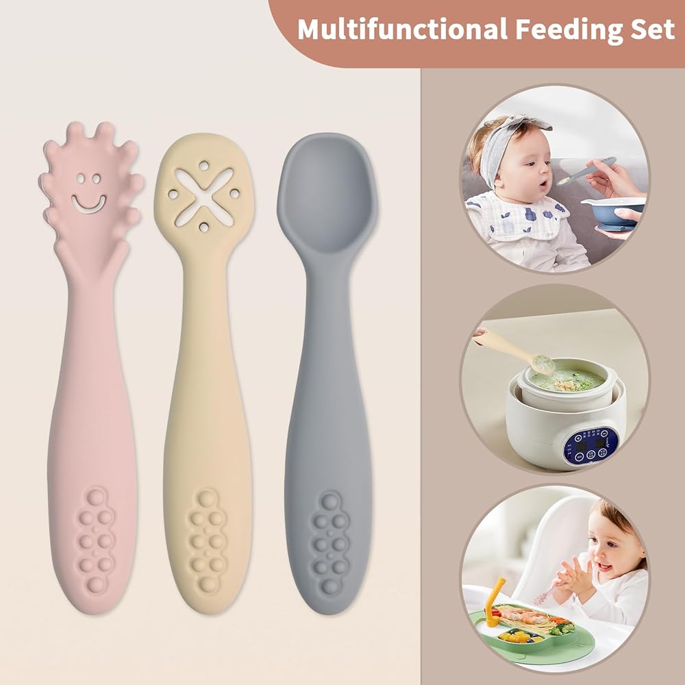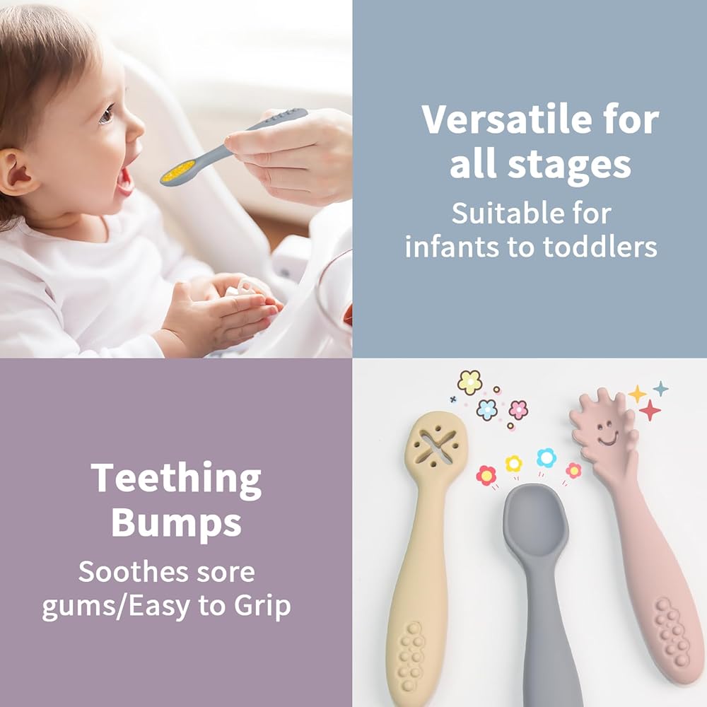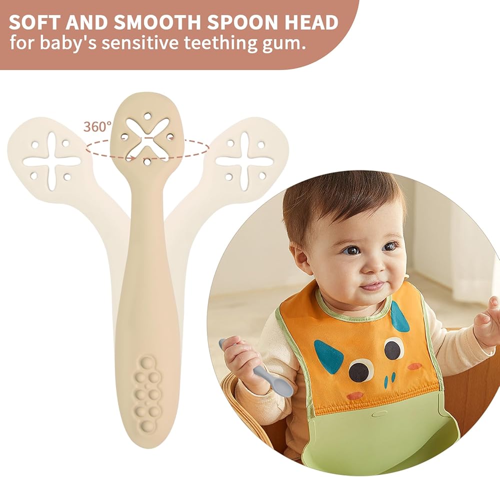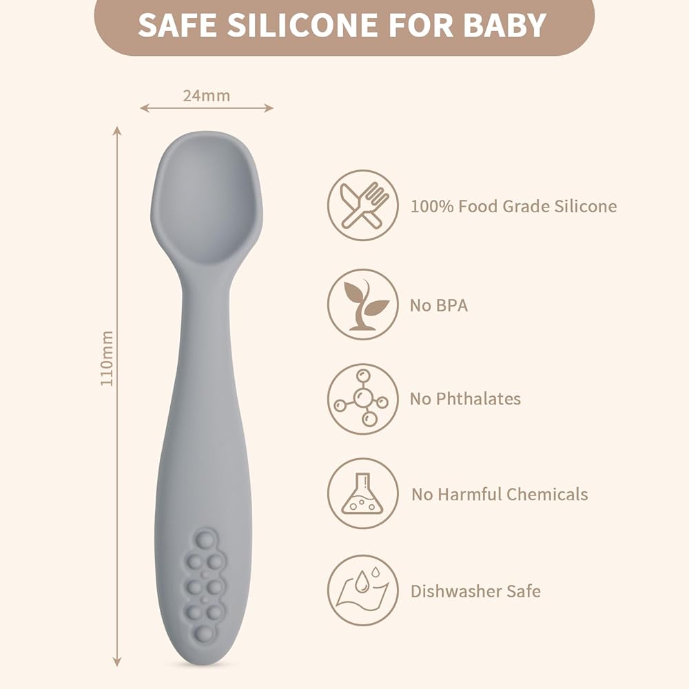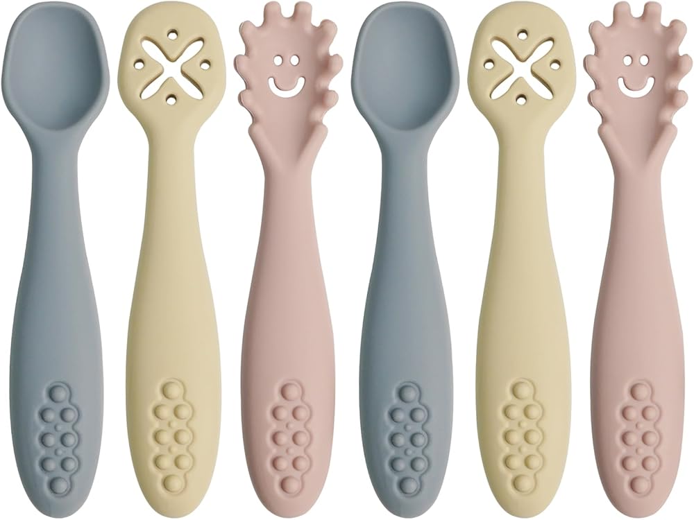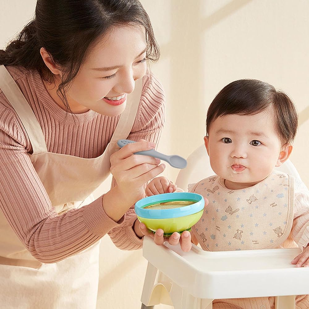 ملاعق سيليكون للأطفال، 6 عبوات من أدوات التغذية الذاتية للأطفال للمرحلة الأولى، ملاعق ذات أطراف ناعمة، ملاعق تدريب الأطفال بعمر 6 أشهر فما فوق، مستلزمات فطام الأطفال من السيليكون الآمن غذائيًا، آمنة للاستخدام في غسالة الأطباق