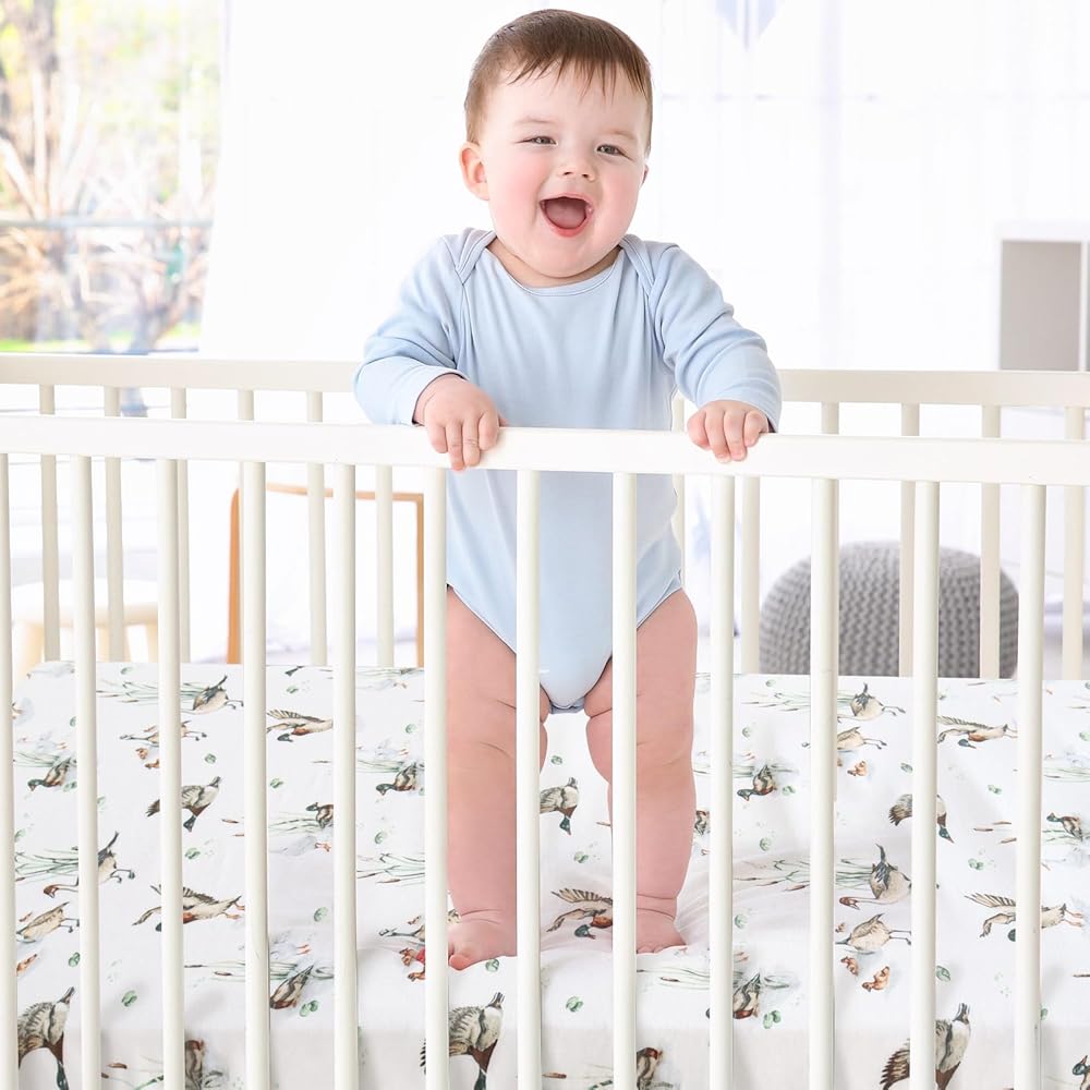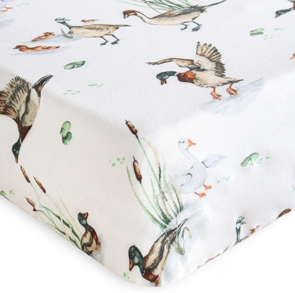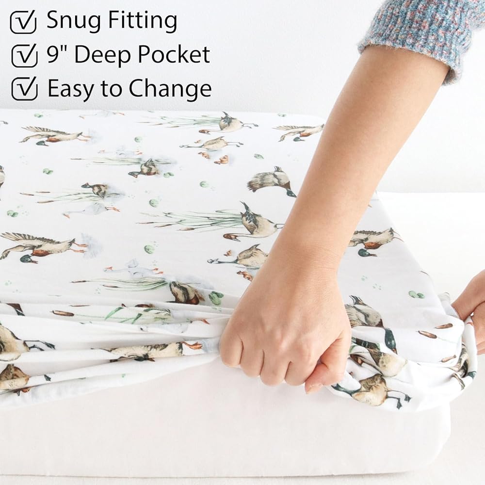 نمط طبيعي وعصري - اصنع غرفة حضانة مذهلة لطفلك مع ملاءة سرير البطة الرائعة هذه. هدية مثالية للآباء الجدد وهي ضرورية لأي تسجيل أطفال.