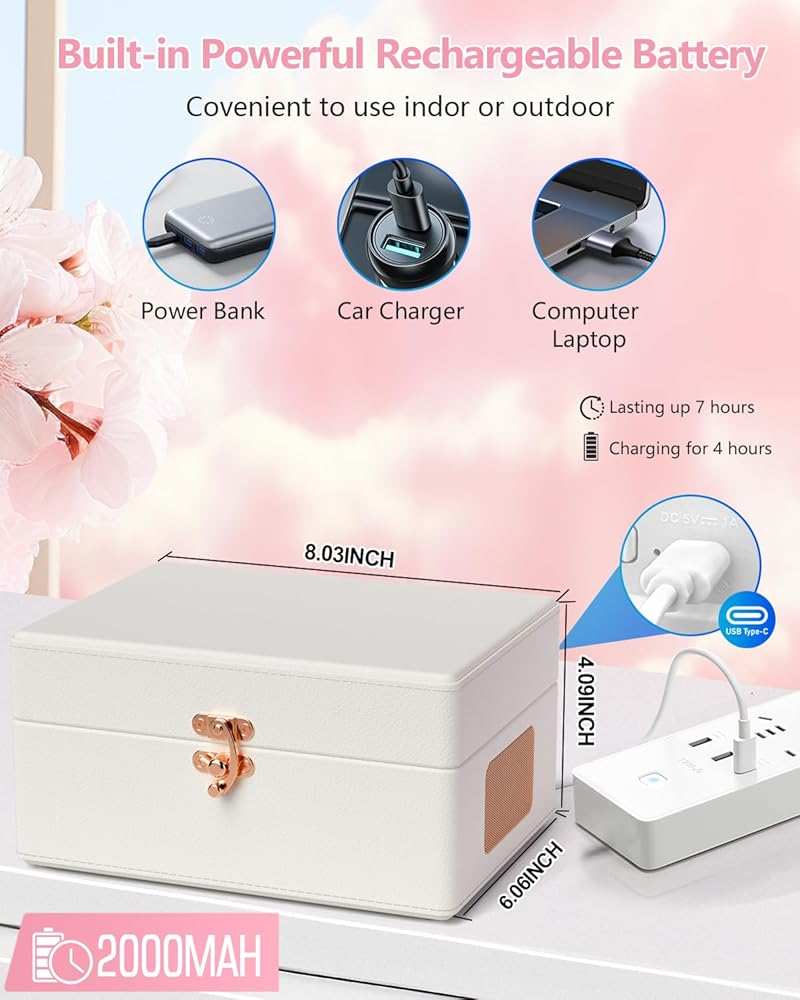 【هدايا رائعة】- مشغل أقراص مضغوطة محمول عتيق مع جزء خارجي من جلد الليتشي المحبب يدويًا وأجزاء صلبة من الذهب الوردي، يبدو أنيقًا وأنيقًا وملمسًا للغاية. مظهر على شكل حقيبة يمنع الغبار بشكل فعال وهو أيضًا ديكور رائع وترفيه لأي ركن من أركان منزلك.