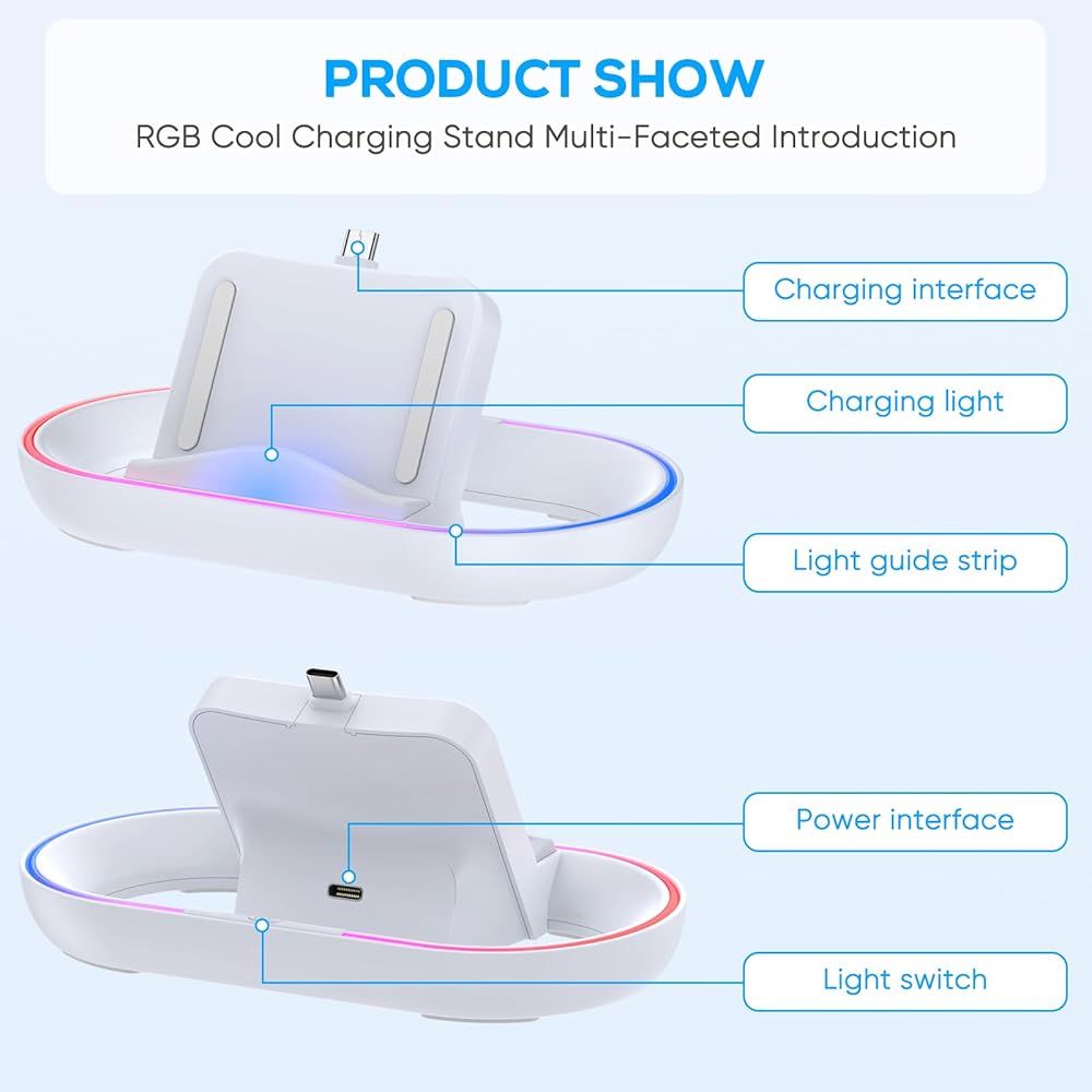 【محطة شحن بخطوة واحدة】ببساطة ضع وحدة التحكم المحمولة باليد ps Portal في وضع مستقيم على موصل النوع C لمحطة الشحن وابدأ الشحن. لا توجد خطوات معقدة أو ملحقات إضافية مطلوبة، سهل الاستخدام للغاية. ✨نصائح ودية: يرجى إزالة الجراب الواقي عند الشحن، قد تحتاج إلى محول منفذ USB A