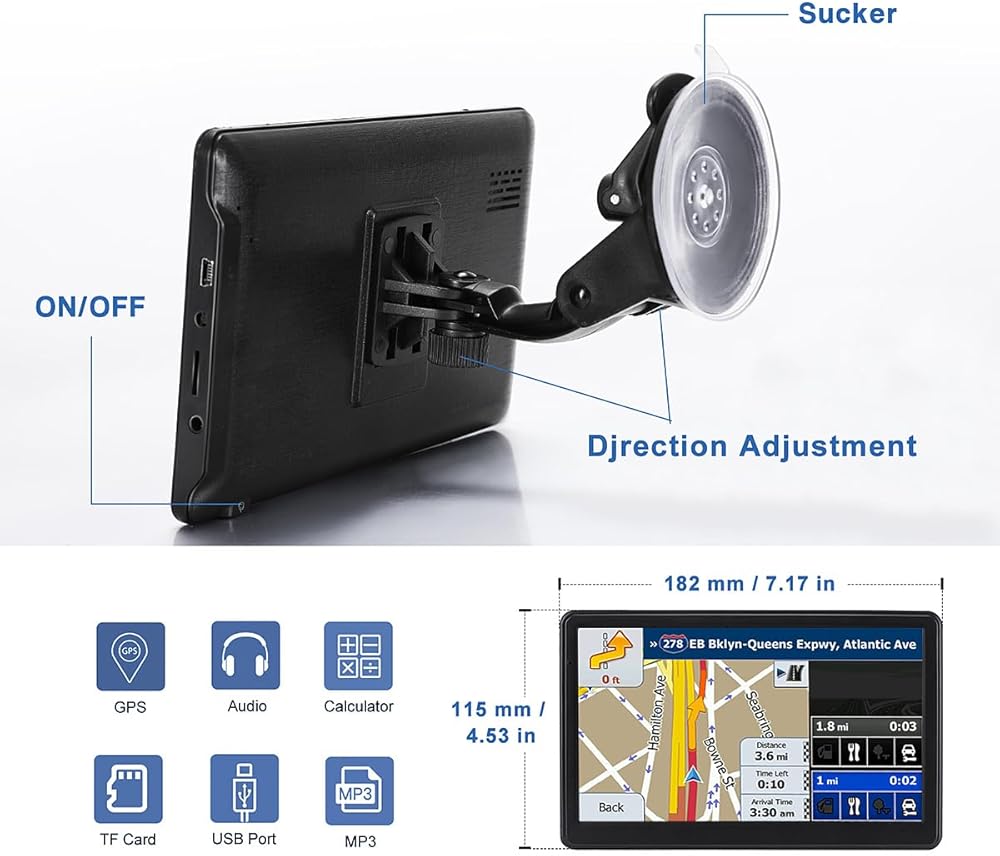 نظام تحديد المواقع العالمي للسيارة، أحدث خريطة لعام 2024، شاشة لمس 7 بوصات، نظام تحديد المواقع العالمي للسيارة سعة 256-16 جيجابايت، توجيه اتجاه الانعطاف الصوتي، دعم السرعة وتحذير الضوء الأحمر، خريطة مدى الحياة لأمريكا الشمالية مثبتة مسبقًا، تحديث مجاني...