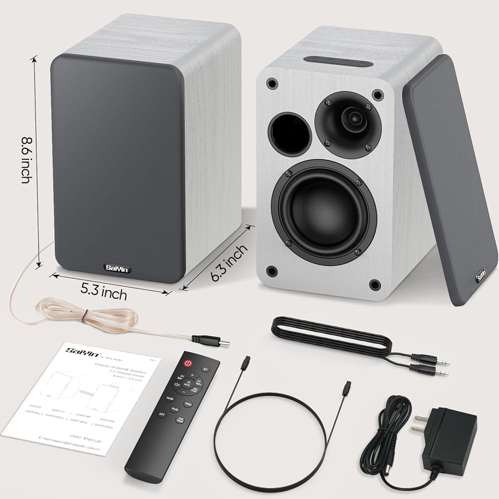 مكبرات صوت Saiyin Bluetooth Bookshelf، مكبرات صوت تلفزيون تعمل بالطاقة 30 وات × 2 مع مكبر صوت 3.5 بوصة، ومكبرات صوت قابلة للدوران مع مدخل بصري/AUX/RCA للكمبيوتر الشخصي والتلفزيون