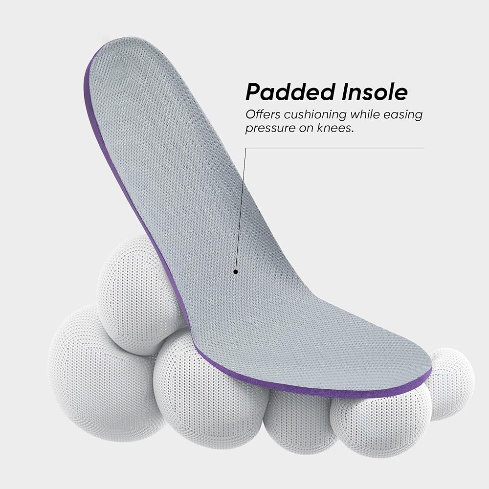 نعل داخلي مبطن: يعمل النعل الداخلي الإسفنجي المغطى بشبكة عالية الكثافة على تخفيف الضغط على الركبتين والكاحلين بشكل فعال، مما يجعل أحذية المشي النسائية هذه رائعة للتنقل ومشي الكلاب والجري وما بعده.