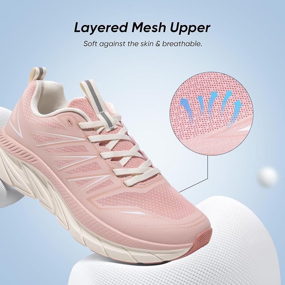 ارتداد مريح: تتميز أحذية المشي هذه للنساء بنعل أوسط سميك من مادة EVA للمشي المريح ولوحة الالتواء من مادة TPU على شكل X موضوعة في منتصف القدم لتعزيز الثبات.