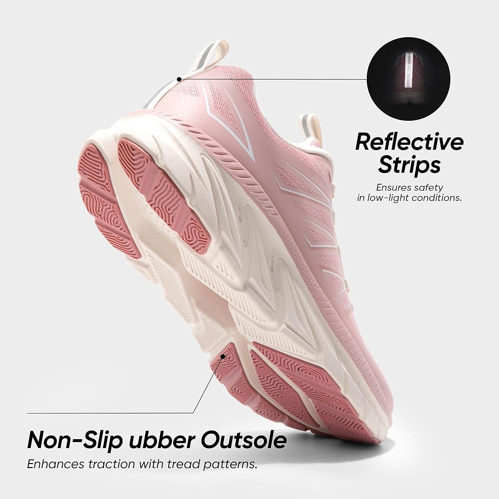 شرائط عاكسة: تم تصميم هذه الأحذية الرياضية النسائية بشرائط عاكسة تزيد من الرؤية في ظروف الإضاءة المنخفضة مع ضمان السلامة أثناء الجري ليلاً والركض الصباحي.