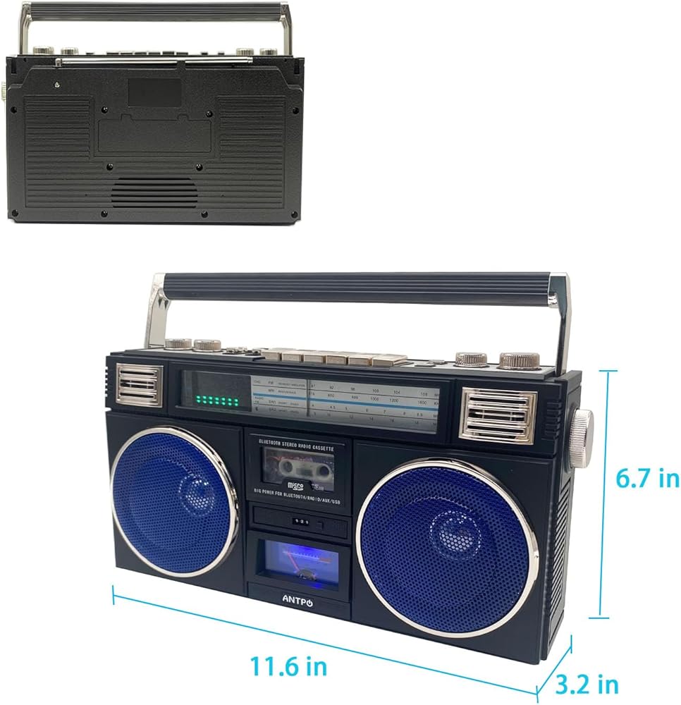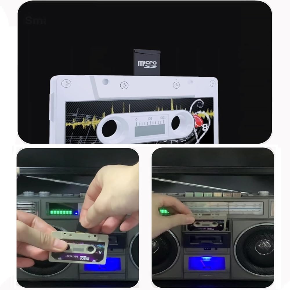 • 【كاسيت جديد وتصميم قديم】: صندوق ذراع قديم يستخدم هيكل كاسيت مبتكر، يتم تخزين مصدر الموسيقى عالي الجودة في بطاقة SD الصغيرة، ثم يتم وضع بطاقة Micro SD بذكاء في الكاسيت الأصغر. يتمتع مشغل كاسيت بوم بوكس ​​بمظهر أنيق ورجعي، وتصميم كلاسيكي بأثر رجعي مع هوائيات تلسكوبية، فهو يمزج بين التكنولوجيا الحديثة التي لا تحد من الديكور البسيط العتيق.