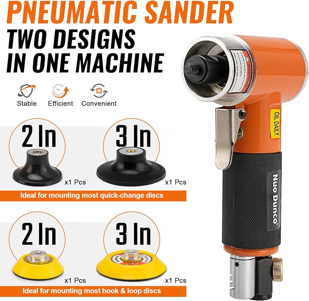 مجموعة أدوات صنفرة الهواء المدارية الصغيرة 2/3 بوصة 2 في 1 مطحنة هواء بزاوية صناعية ماكينة سنفرة هوائية لأعمال هيكل السيارات والمعادن والخشب - موديل جديد
