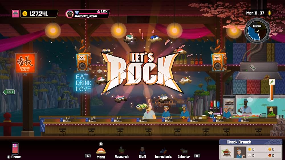 The Midnight Sushi Bar - Cook up delicious sushi dishes using fresh-caught ingredients. If enough word gets around, you may be visited by a special customer! Rack up sales at the sushi bar so you can delve deeper into the sea of unknown!