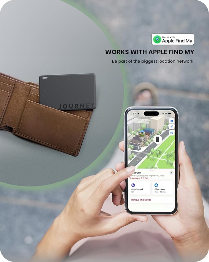 بطاقة JOURNEY LOC8 Finder - محدد موقع المحفظة الآمن مع عمر بطارية طويل وتتبع مسموع، تصميم منفصل مضاد للسرقة، هيكل رفيع بشكل ملحوظ، يعمل مع تطبيق Find My من Apple.