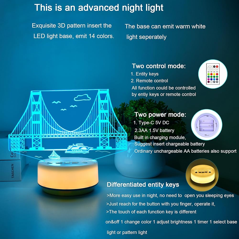 【تصميم مبتكر ومواد متقدمة】 لقد قمنا بإعادة تصميم قاعدة هذا الضوء الليلي. لقد قمنا بالعديد من التحسينات. أزرار مادية ملونة معدنية مطلية بالكهرباء. قم بالتدوير لفتح غطاء حجرة البطارية. مصنوعة من مادة البولي كربونات المتقدمة، متينة وغير صفراء. أضف مجموعة من المصابيح البيضاء الدافئة. ثنائي الفينيل متعدد الكلور كبير لتبديد الحرارة بشكل أفضل وعمر أطول. منفذ من النوع C. إضافة وظيفة الموقت، الخ.