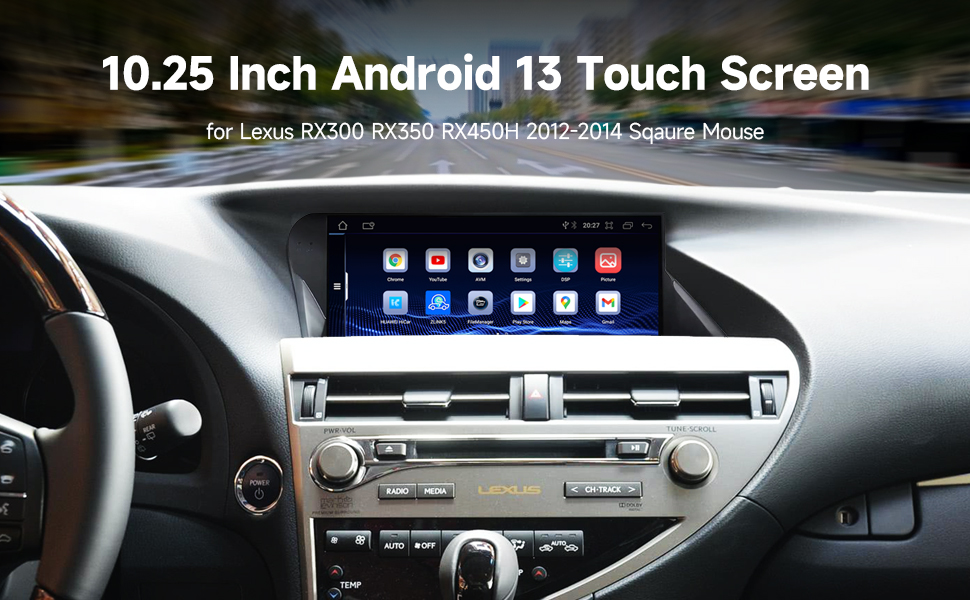 نظام Android 13 10.25 بوصة شاشة تعمل باللمس راديو سيارة ستيريو لكزس RX300 RX350 RX450H 2012-2014 وحدة رأس CarPlay BT مدمجة 4 جيجابايت ذاكرة الوصول العشوائي + 64 جيجابايت ROM (2012-2014 ماوس Sqaure)