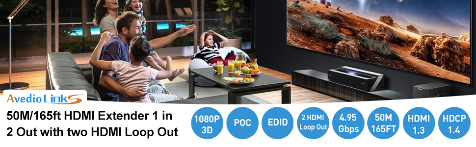 ❗❗ موسع HDMI للشاشة المزدوجة: يمكن لوصلات avedio 2 منفذ HDMI إلى موسع إيثرنت تمديد مصدر فيديو HDMI واحد (عصا النار، مشغل Blu-ray، صندوق التلفزيون، إلخ.) إلى شاشتي HDMI عبر كابل cat 5e/6/7 في نفس الوقت لمسافة تصل إلى 165 قدمًا (50 مترًا). علاوة على ذلك، يوجد منفذا حلقة محلية HDMI على طرف الإرسال (كابل HDMI على بعد 5 أمتار)، مما يجعل مشاركة بعض الأفلام الصوتية الممتازة على مسافة طويلة أكثر ملاءمة.