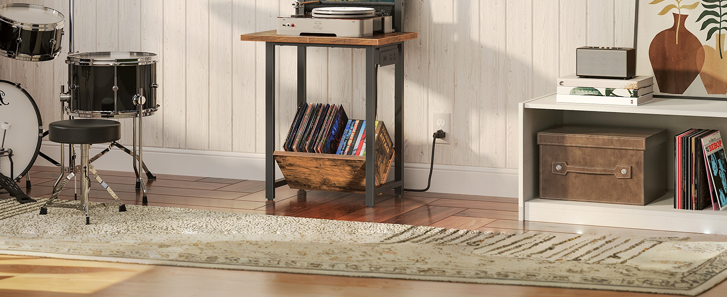 • تصميم مدروس: مزود بجهاز مضاد للطرف و4 أقدام قابلة للتعديل، تظل شاشة تسجيل الفينيل الخاصة بنا ثابتة وتمنع الخدوش على الأرض. بالإضافة إلى ذلك، فإننا نقدم خيارين متميزين للتخزين لمشغلات التسجيلات وسجلات الفينيل، مما يلبي احتياجات التخزين المتنوعة الخاصة بك