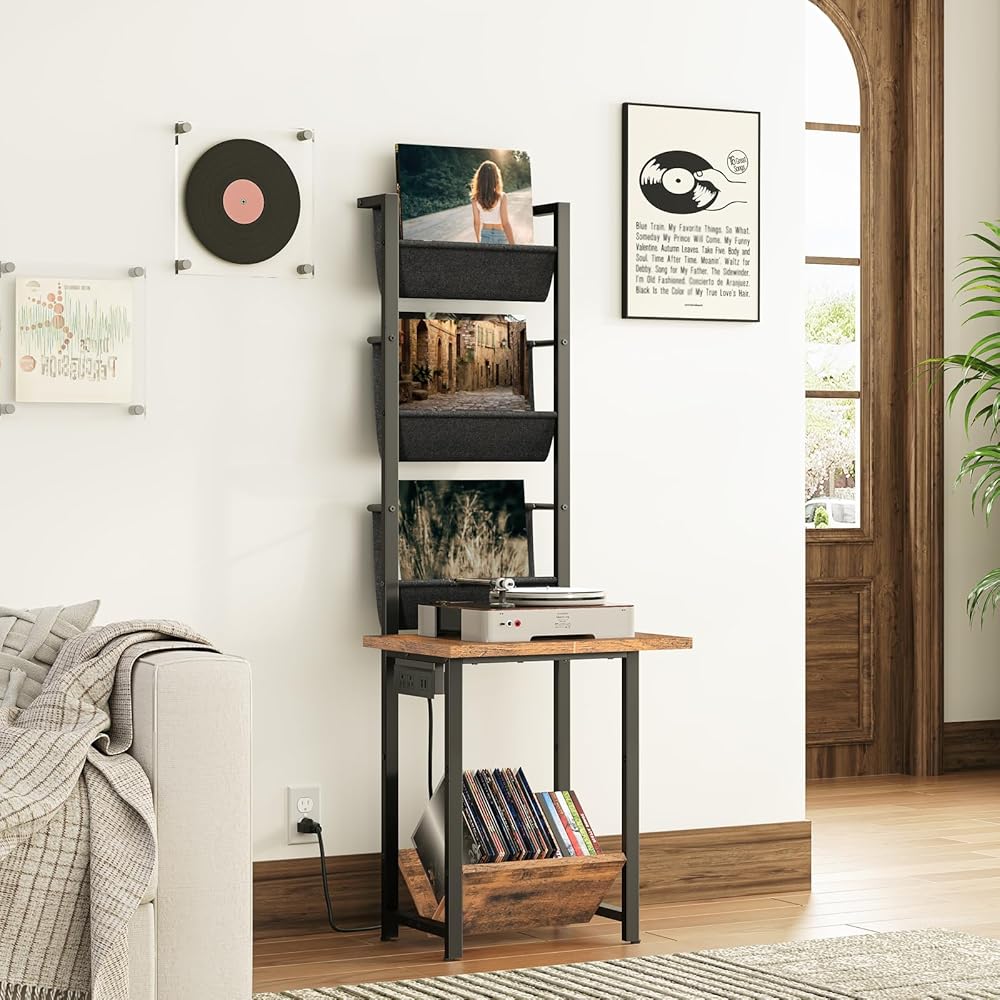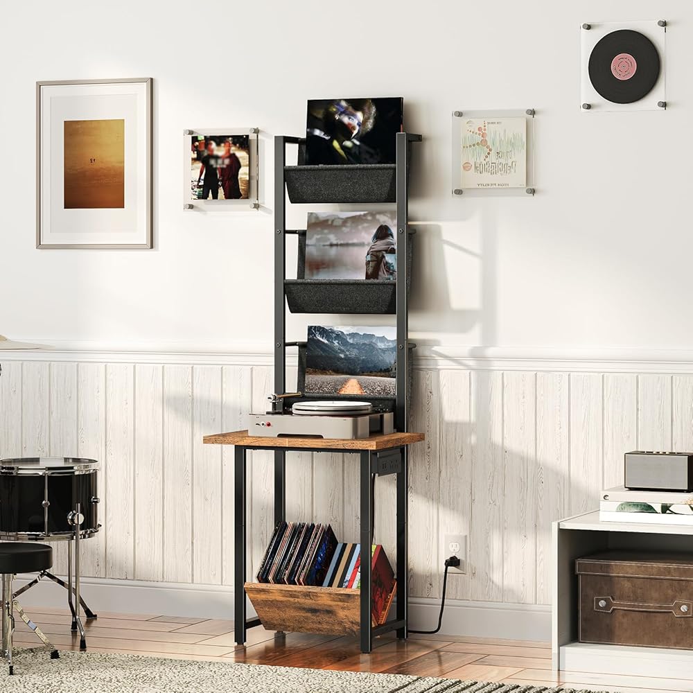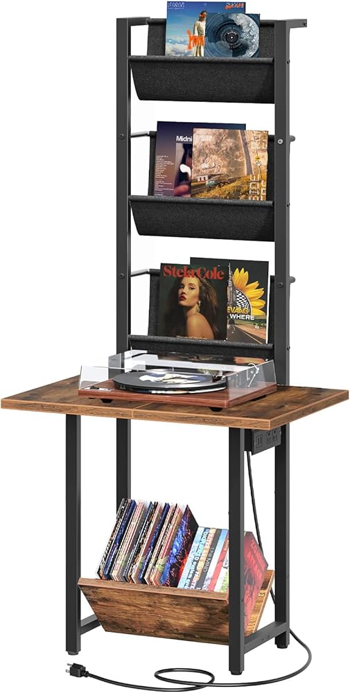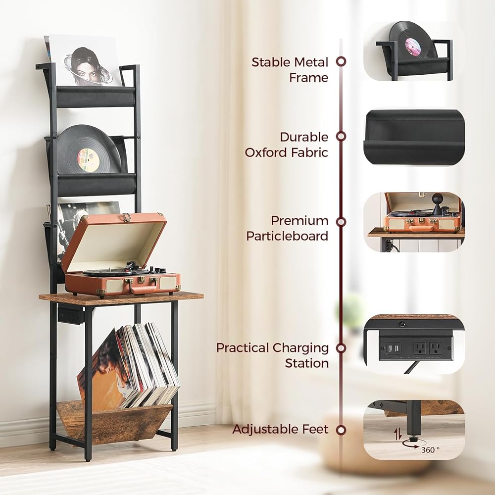 حامل مشغل تسجيلات مع مخرج طاقة، حامل قرص دوار مع وحدة تخزين من الفينيل، طاولة مشغل تسجيلات فينيل تصل إلى 200 ألبوم، رف حامل تسجيلات من الفينيل، منظم مشغل تسجيلات ETHR106E01