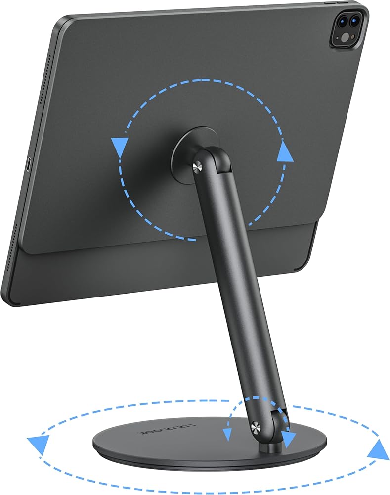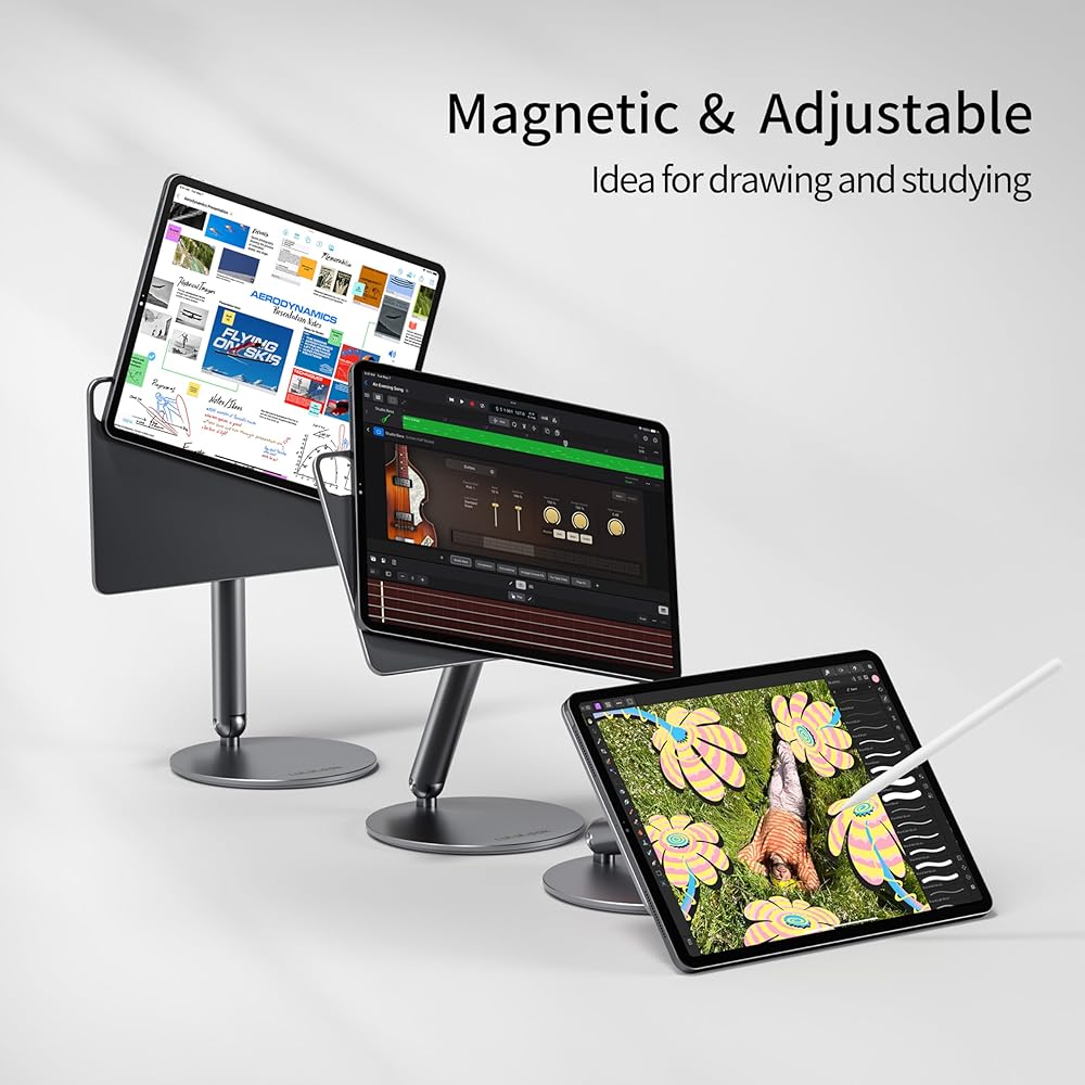 • تعديل كامل 360 درجة: يتميز هذا الحامل المغناطيسي لجهاز iPad Pro بلوحة وقاعدة قابلة للتعديل 360 درجة، ويتكيف بسهولة مع سيناريوهات الاستخدام المختلفة. سواء كنت في العمل أو الترفيه أو الرسم، يمكنك دائمًا العثور على الزاوية الأكثر راحة.