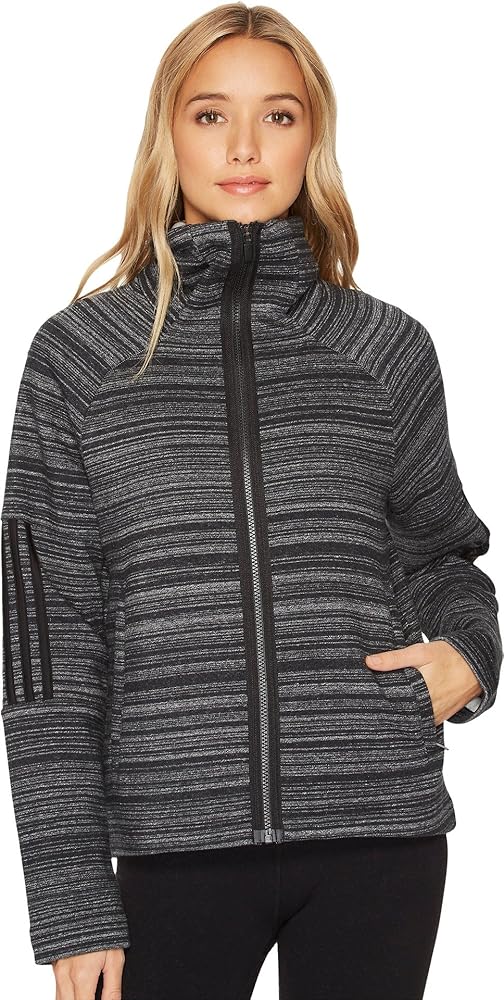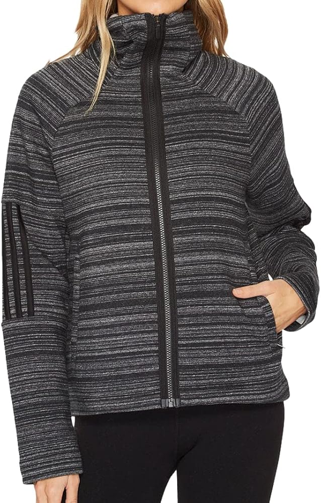 توجه إلى تمارينك بأناقة مع هذا الغطاء النسائي الياقة العالية التي تقف على الرقبة تضفي مظهرًا أنيقًا وتبقيك مرتاحًا بينما تضيف لوحات الأكمام ذات الثلاثة خطوط قليلاً من أناقة اديداس