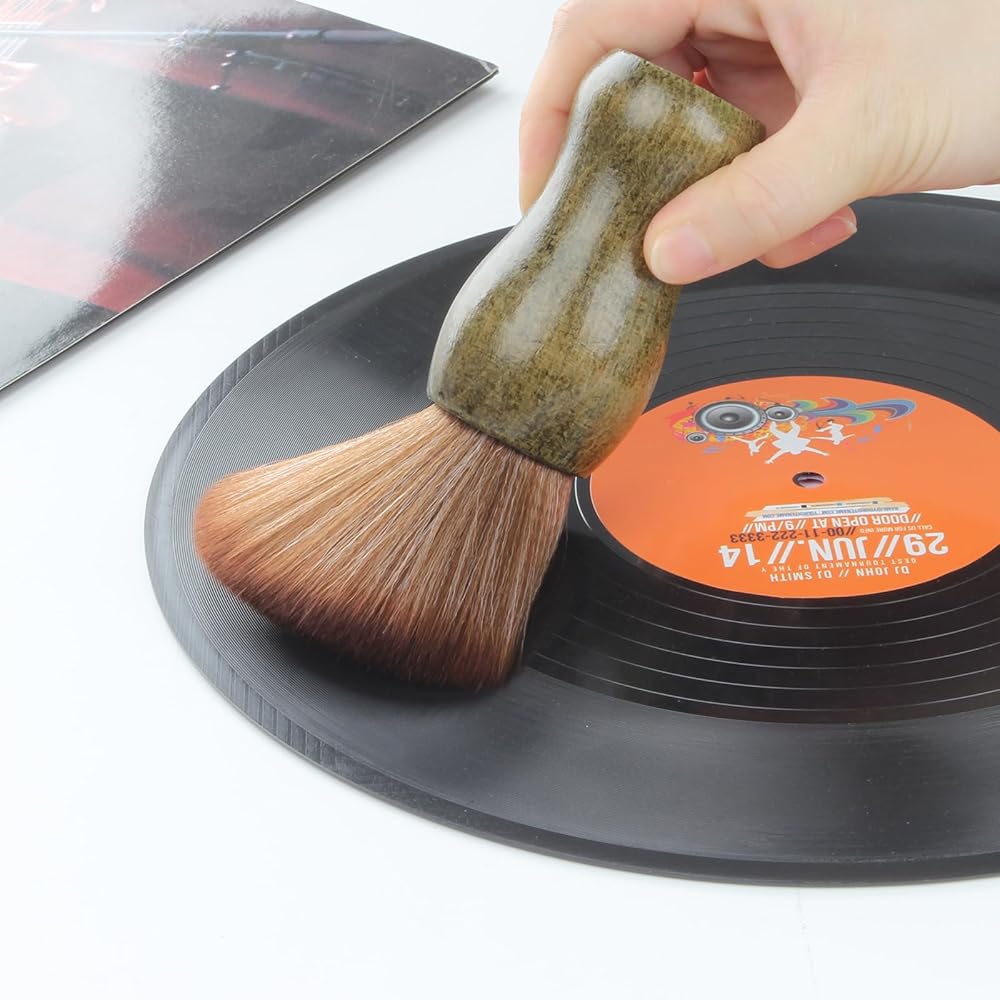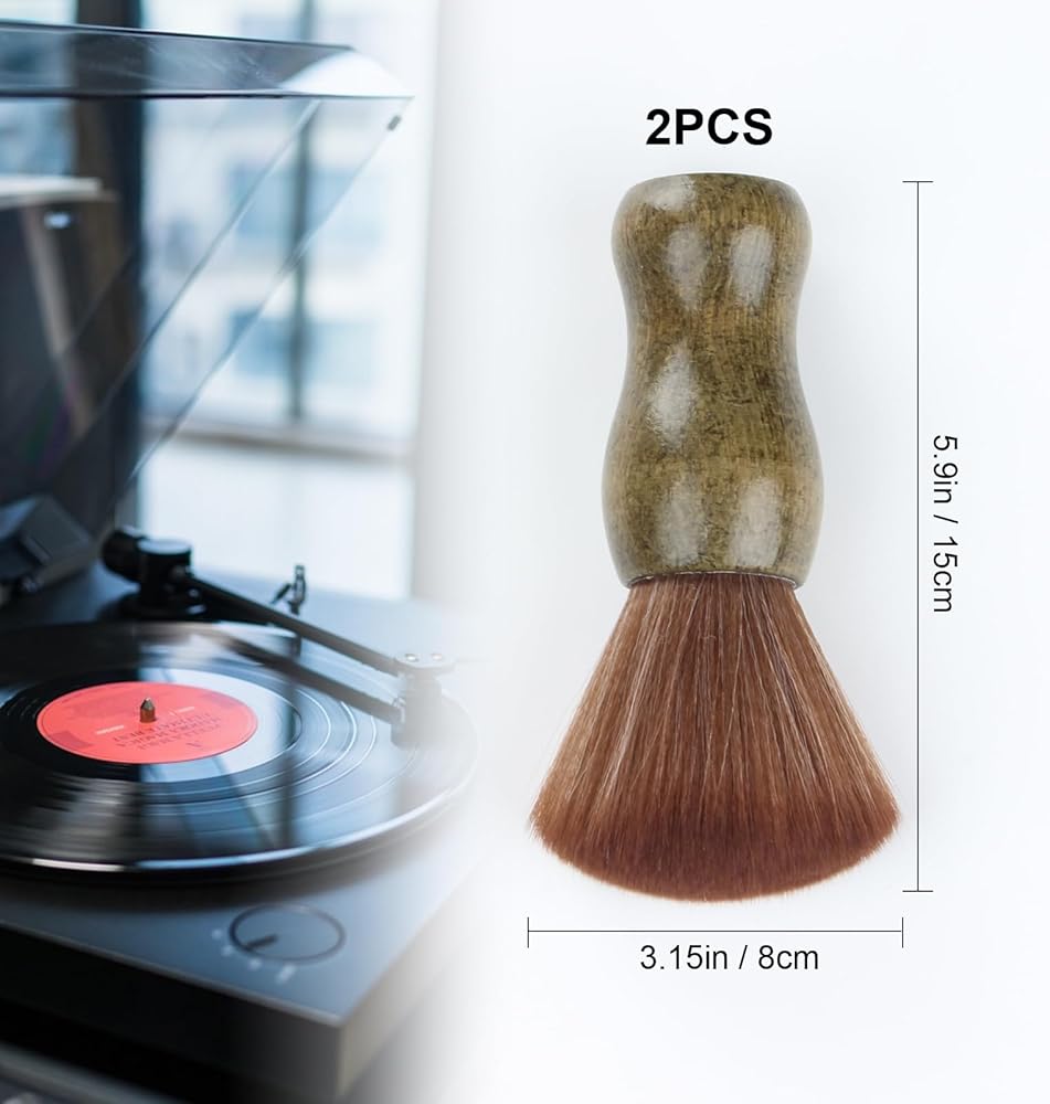 قطعتان من فرشاة تنظيف سجلات الفينيل، فرشاة تنظيف أسطوانات الفينيل الدوارة LP، فرشاة تنظيف أسطوانات الفينيل الناعمة المقاومة للكهرباء الساكنة، فرشاة تسجيل تنظيف الغبار المضادة للكهرباء الساكنة، فرشاة إزالة الغبار من الفينيل