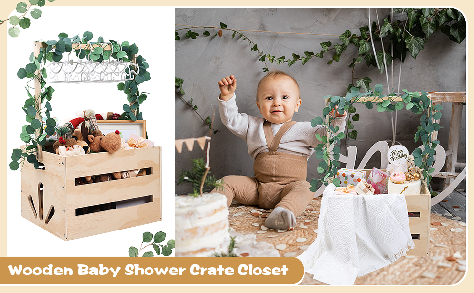 سلة هدايا للأطفال: تتضمن المجموعة صندوقًا خشبيًا واحدًا، و7 علاقات، وعلامة ترحيب واحدة، و26 حرفًا خشبيًا، وإكليلًا من الأوكالبتوس؛ ما عليك سوى إضافة الملابس والحفاضات والألعاب وما إلى ذلك إلى ديكور حمام الطفل الإضافي الذي يمكنك استخدامه لتعليق ملابس الأطفال وتخزين الأشياء الصغيرة بعد الحفلة.