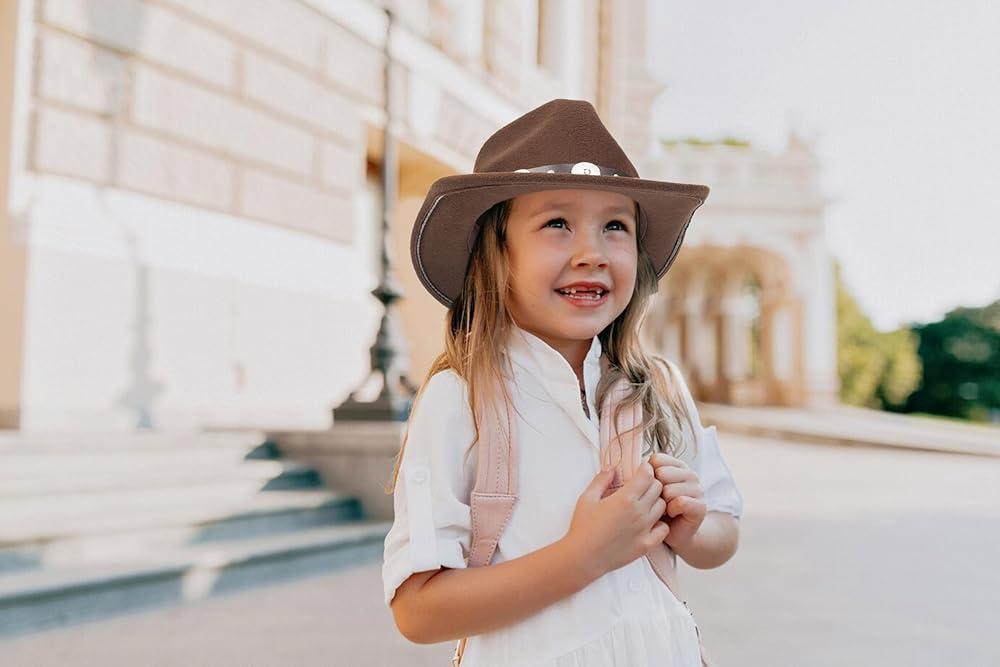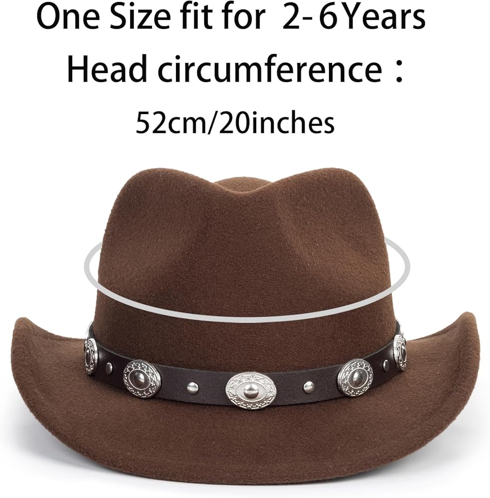 قبعة رعاة البقر للأطفال الصغار: مصنوعة من 35% مادة الصوف و65% بوليستر، قبعة رعاة البقر للأطفال تناسب من عمر 2 إلى 7 سنوات، عصرية ومريحة وناعمة، نمط قبعة رعاة البقر الغربية الكلاسيكية.