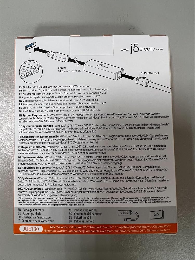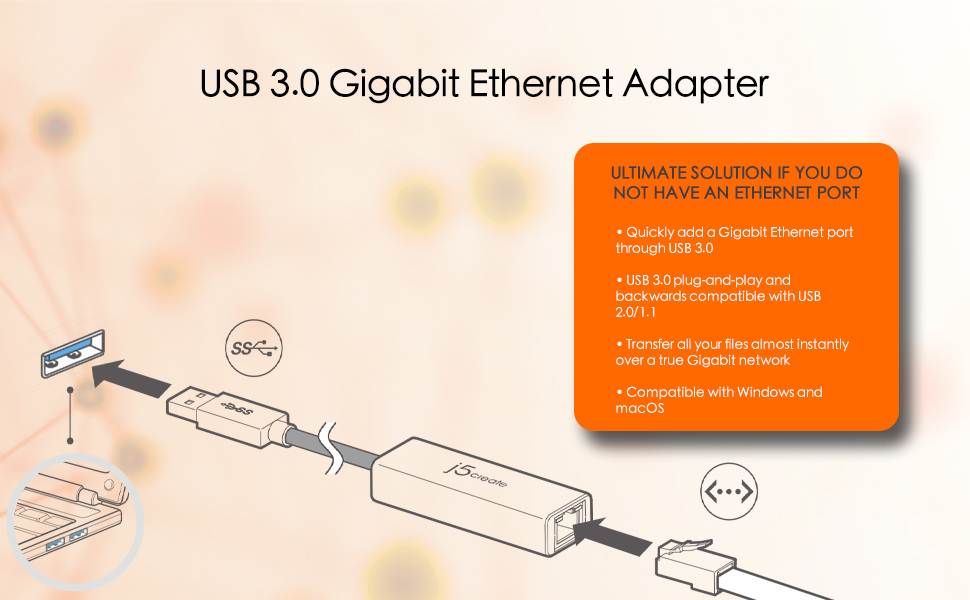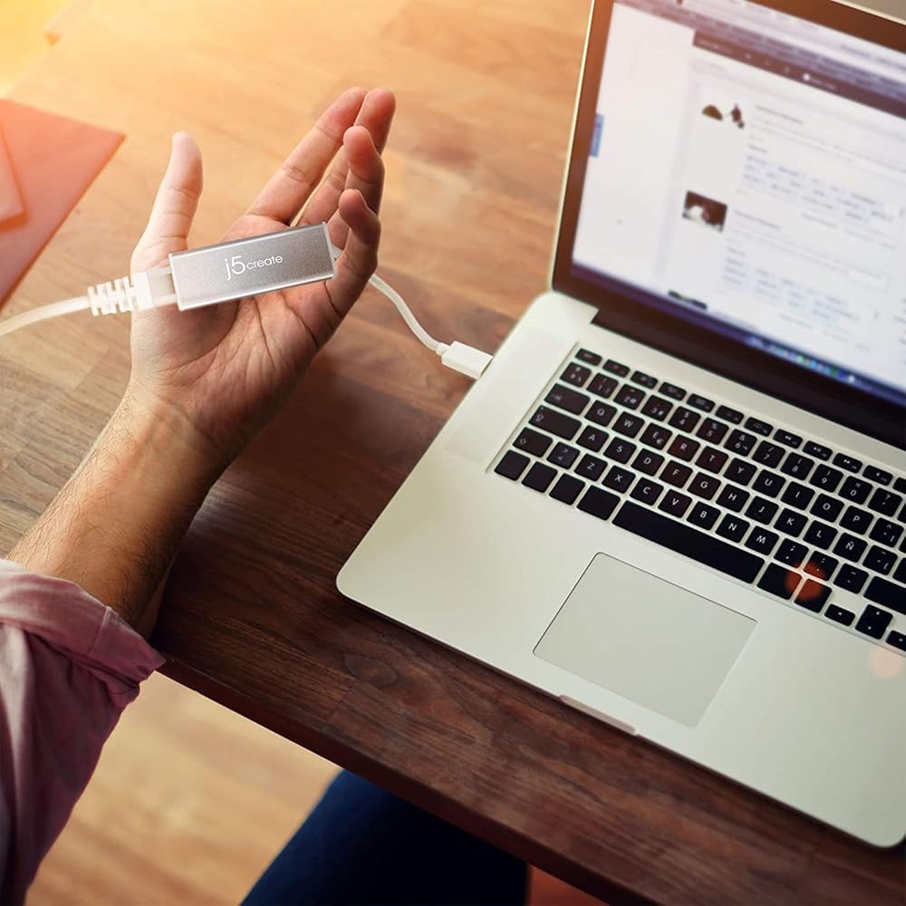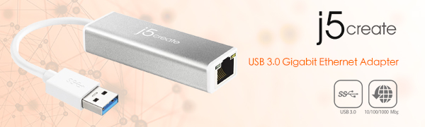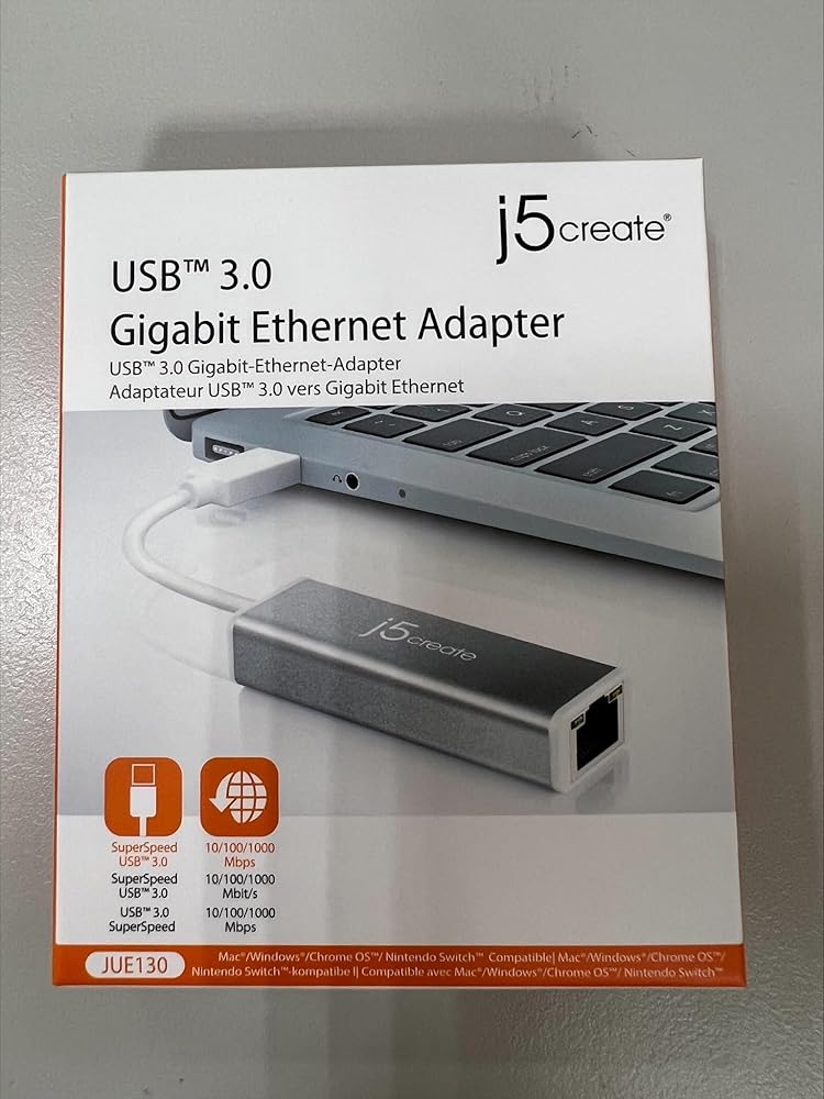 j5create USB 3.0 إلى RJ45 جيجابت إيثرنت محول، 10/100/1000 إيثرنت LAN محول الشبكة لنظام التشغيل Mac، Windows 11/10/8.1/7، نظام التشغيل Chrome، سطح المكتب، الكمبيوتر المحمول (JUE130)