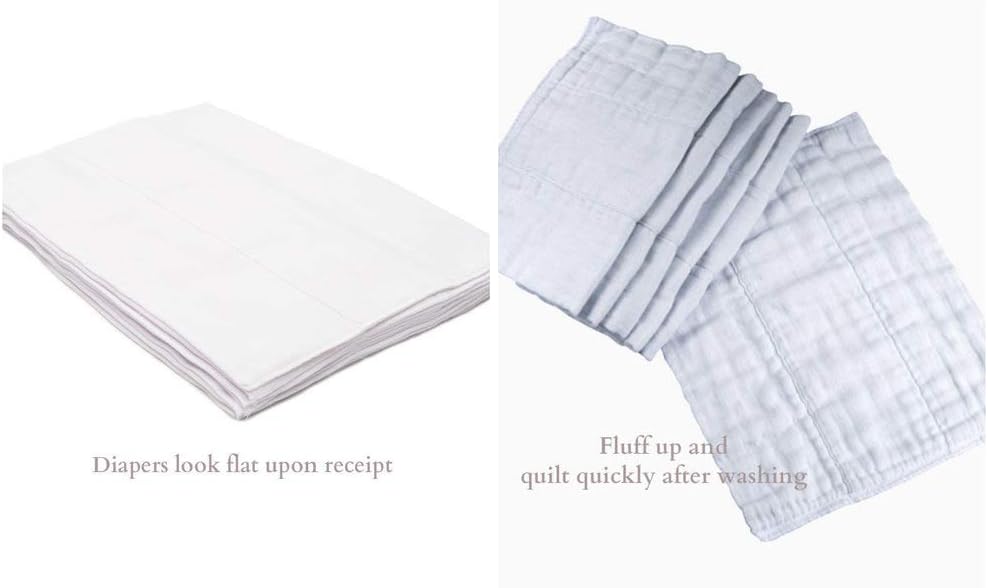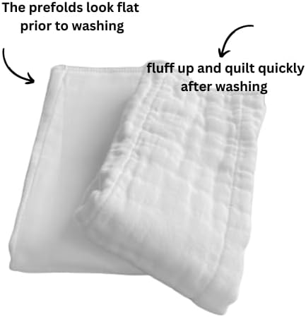 • ✔ يبلغ مقاس كل مطوية مسبقًا حوالي 14 × 20 بوصة (35.5 × 50.8 سم) قبل الغسيل. سوف تنتفخ الحفاضات المطوية مسبقًا وتغلف بعد الغسيل