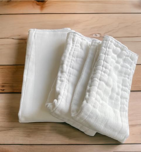 حفاضات قماشية قابلة للطي مسبقًا، من القطن العضوي، 4 × 6 × 4 طبقات، جودة DSQ، قابلة للغسل وإعادة الاستخدام (10-36 رطلاً)، حواف بيضاء - 12 قطعة