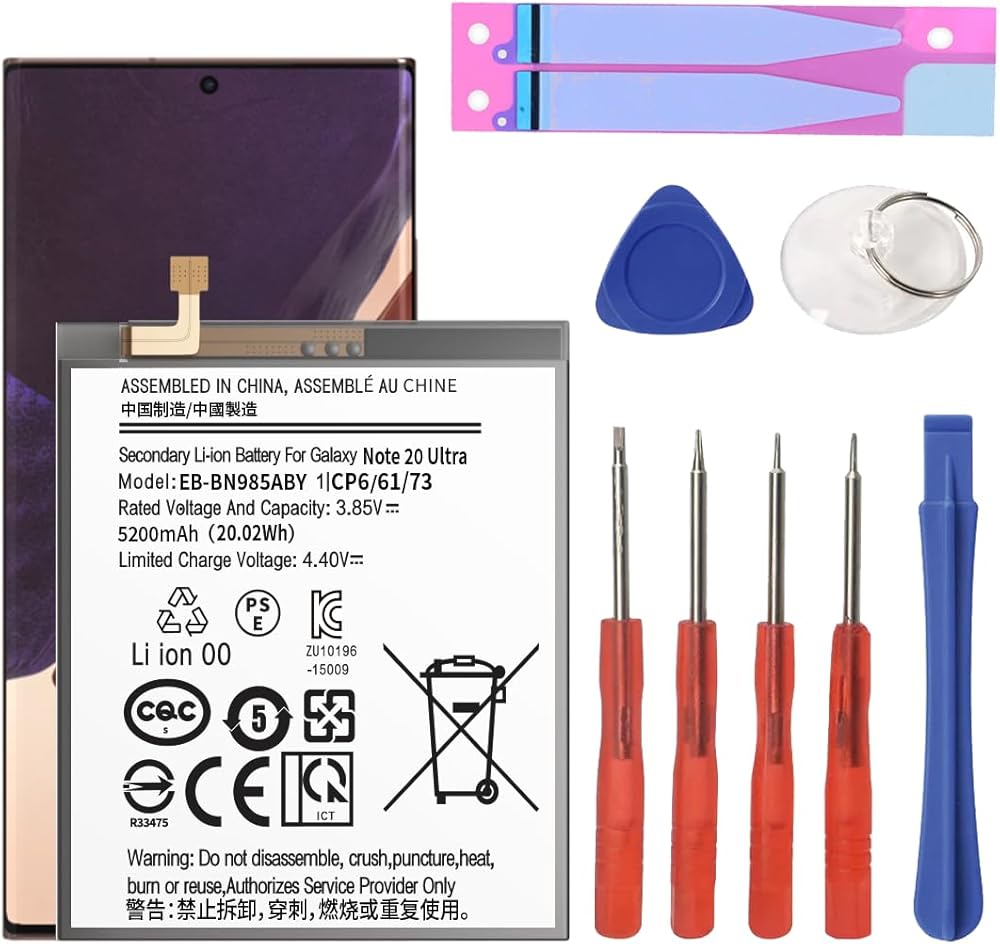 • ►【 ستحصل على 】- محتويات هذه العبوة: 1 × بطارية بديلة عالية الجودة لجهاز Note 20 Ultra؛ 1 × طقم مفك براغي بديل للإصلاح.