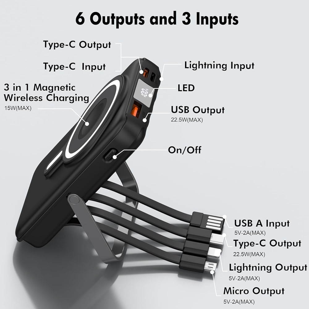 【بنك طاقة مغناطيسي 3 في 1 بقوة 10000 مللي أمبير في الساعة مع حامل】شاحن محمول لاسلكي متوافق مع سلسلة ساعات Apple (Ultra/8/7/6/SE/5/4/3/2/1)، Airpods 2/ Airpods الجيل الثالث/Airpods Pro/Airpods Pro الجيل الثاني فقط، سلسلة iPhone 12/13/14/15. يمكن استخدام الشحن السلكي PD 20W&QC22.5W لمعظم أجهزة Android. كما أنه يدعم الشحن السلكي لمعظم أجهزة Android.