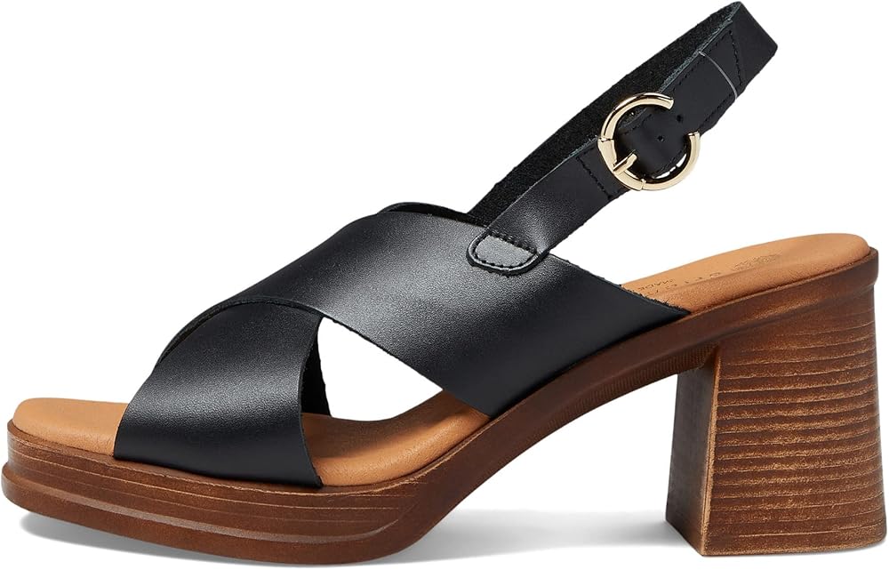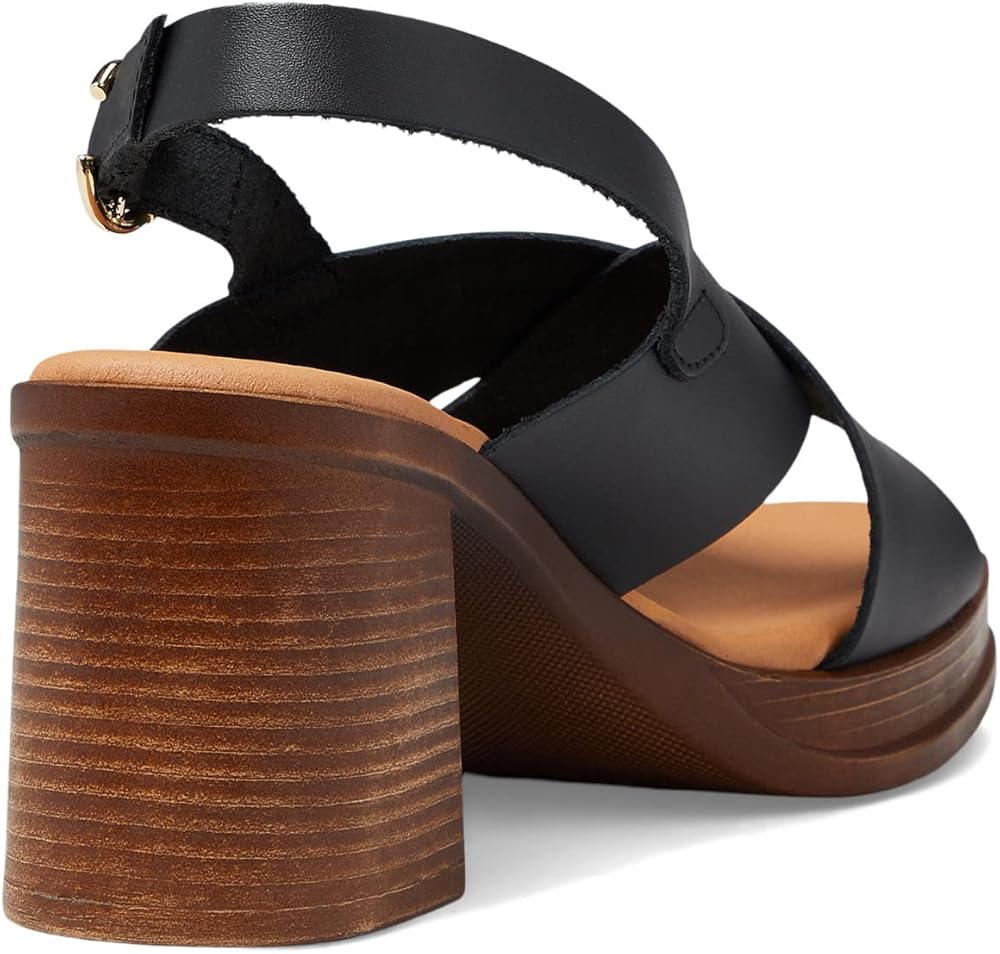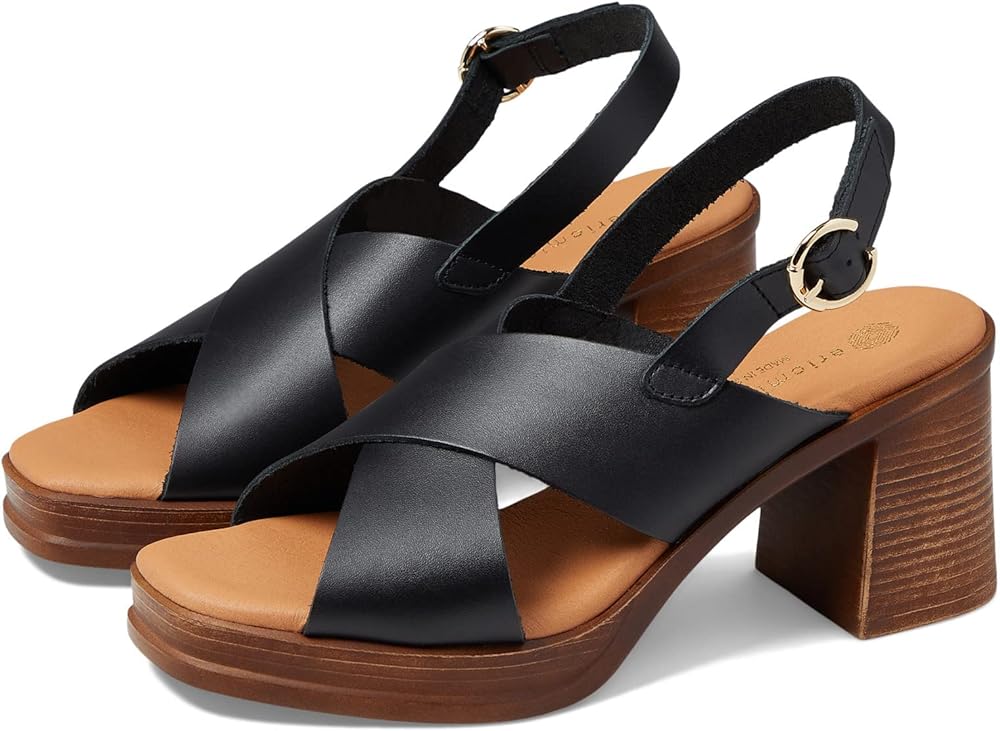 Amp up your style effortlessly and stay comfortable for the entire day, wearing the Eric Michael Savannah Heels. Smooth leather upper with crossover straps. Comfort leather lining. Padded leather footbed. Buckled closure on the ankle strap. Open square toe. Stacked block heel. Synthetic outsole. Made in Portugal.